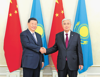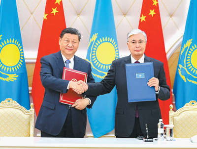 習(xí)近平強(qiáng)調(diào),中哈兩國都處在各自發(fā)展振興的關(guān)鍵階段,雙方要加強(qiáng)兩國發(fā)展戰(zhàn)略對接和治國理政經(jīng)驗(yàn)交流,實(shí)施更多互利共贏的合作項(xiàng)目,助力各自國家發(fā)展。中方愿同哈方提升經(jīng)貿(mào)合作水平,確立未來盡早實(shí)現(xiàn)雙邊貿(mào)易額翻番的新目標(biāo),進(jìn)一步擴(kuò)大進(jìn)口哈薩克斯坦優(yōu)質(zhì)商品,打造電子商務(wù)、數(shù)字經(jīng)濟(jì)等合作新增長點(diǎn)。雙方要做大產(chǎn)能投資合作規(guī)模,挖掘科技創(chuàng)新合作潛能,拓展電動汽車、新能源、跨境電商、衛(wèi)星通信等領(lǐng)域合作。中方愿同哈方積極推進(jìn)跨里海國際運(yùn)輸路線建設(shè),構(gòu)建多元立體聯(lián)通格局。中方支持明年在哈薩克斯坦舉辦“中國旅游年”,決定在哈薩克斯坦開設(shè)第二家魯班工坊。昨天我在機(jī)場聽到哈薩克斯坦少年用標(biāo)準(zhǔn)流利的中文演唱《歌唱祖國》,十分感動。青年是中哈世代友好的傳承者。雙方要發(fā)揮好兩國文化中心和北京語言大學(xué)哈薩克斯坦分校作用,加強(qiáng)人文交流,增進(jìn)兩國民眾尤其是青年一代相知相親,筑牢兩國全方位合作的社會民意基礎(chǔ)。