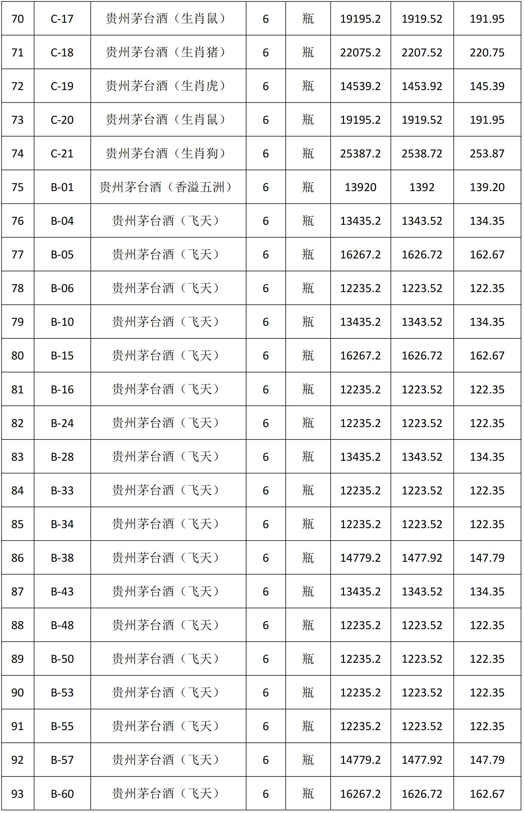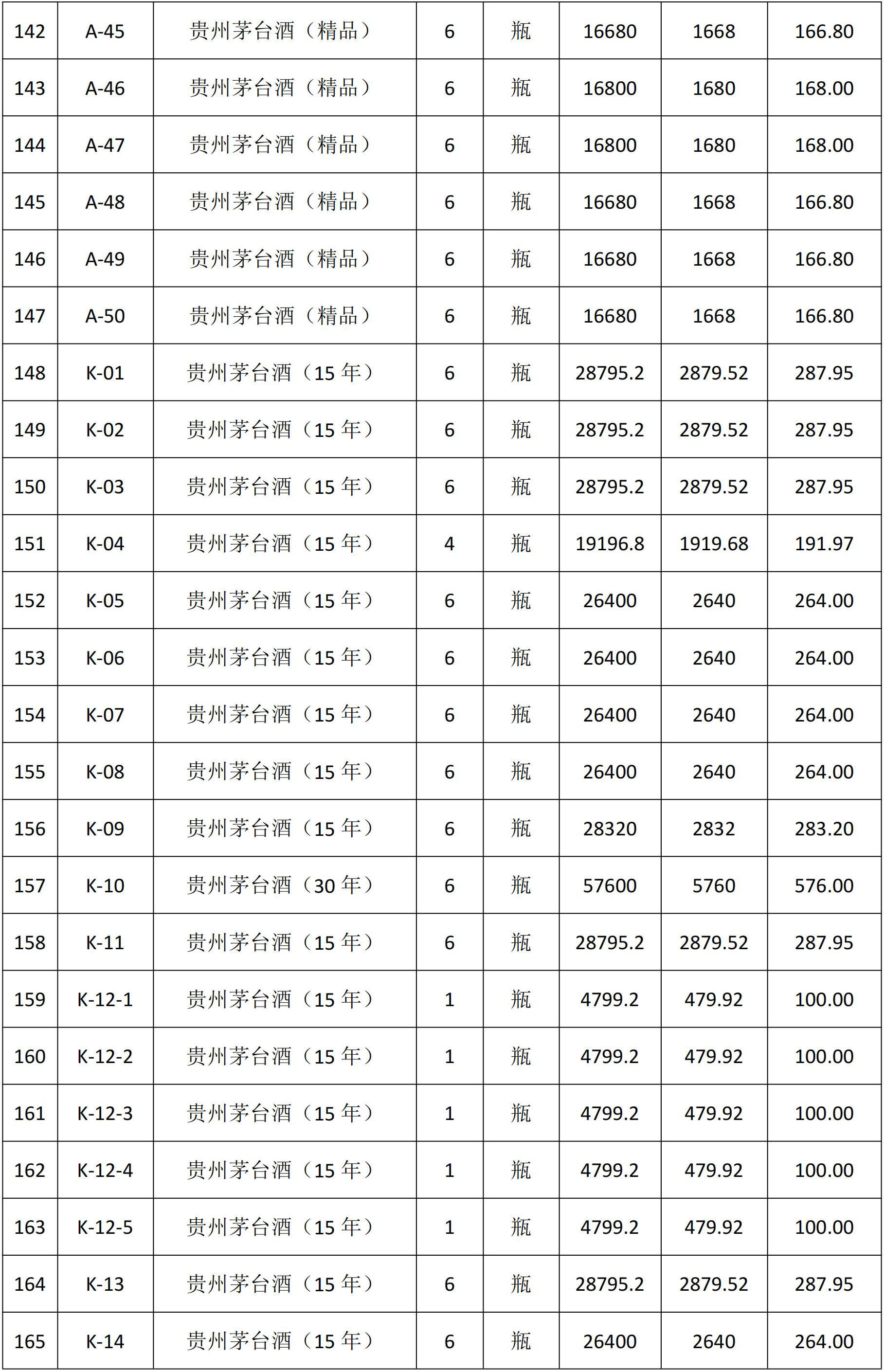 一、拍賣(mài)標(biāo)的:一批茅臺(tái)系列白酒。(詳見(jiàn)拍賣(mài)物品清單,248件)