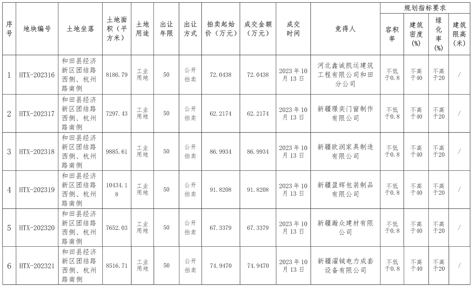 和田地區(qū)國有建設(shè)用地使用權(quán)成交結(jié)果公示
