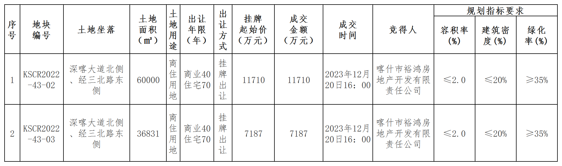 喀什市國有建設(shè)用地使用權(quán)成交結(jié)果公示(喀市自然成交公示[2023]05)