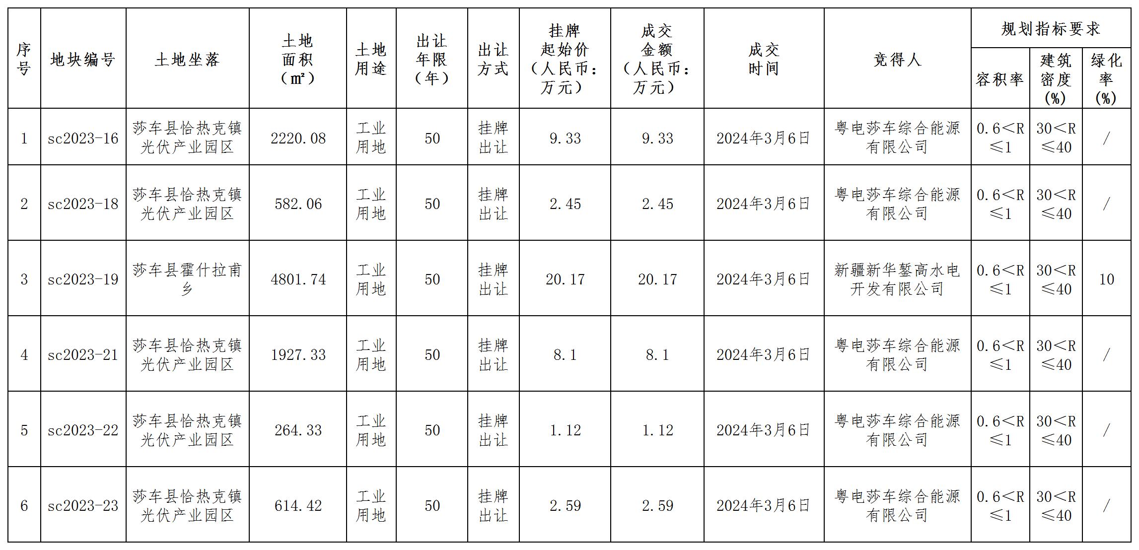 莎車縣自然資源局國(guó)有建設(shè)用地使用權(quán)掛牌出讓成交結(jié)果公示