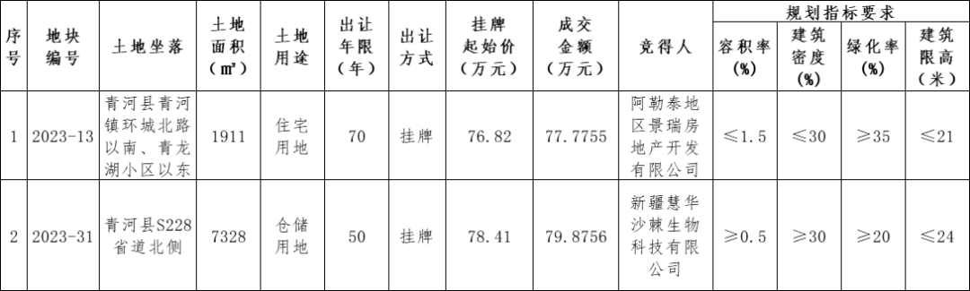 青河縣自然資源局國有建設(shè)用地使用權(quán)掛牌出讓成交結(jié)果公示