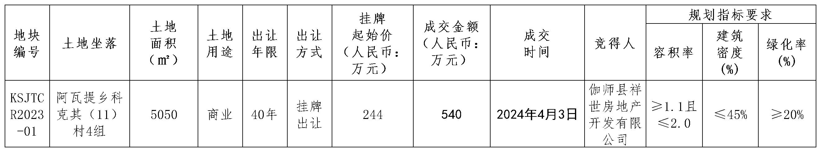 喀什市農(nóng)村集體經(jīng)營(yíng)性建設(shè)用地使用權(quán)掛牌出讓成交結(jié)果公示
