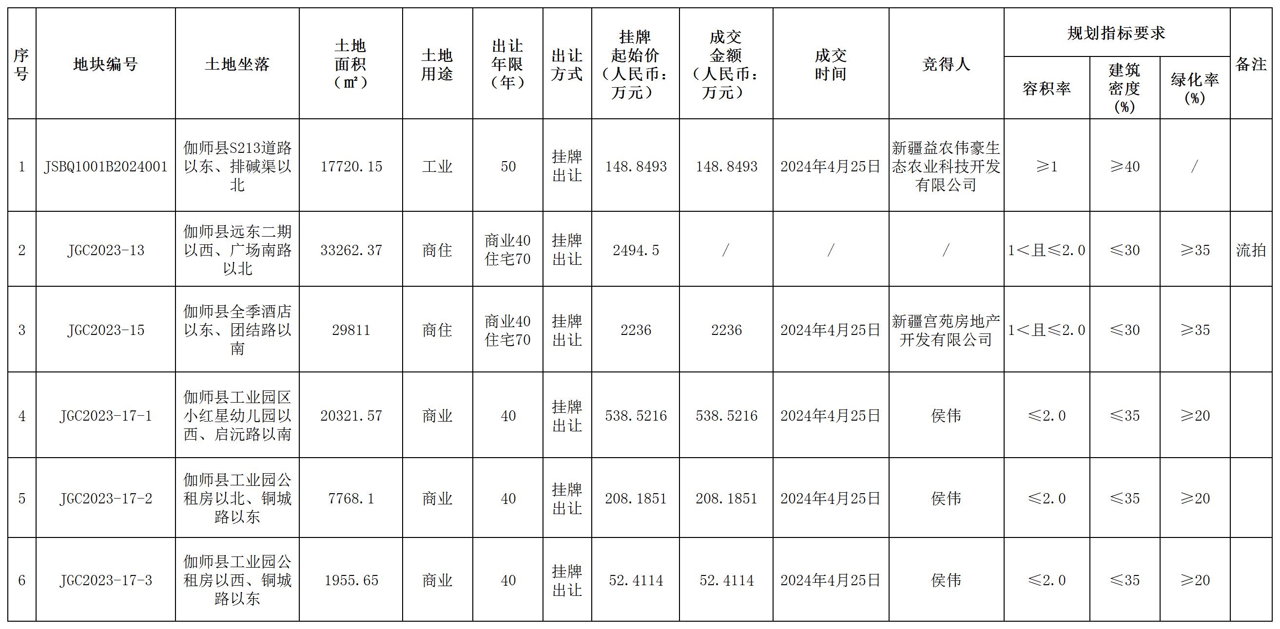 伽師縣自然資源局國(guó)有建設(shè)用地使用權(quán)掛牌出讓成交結(jié)果公示