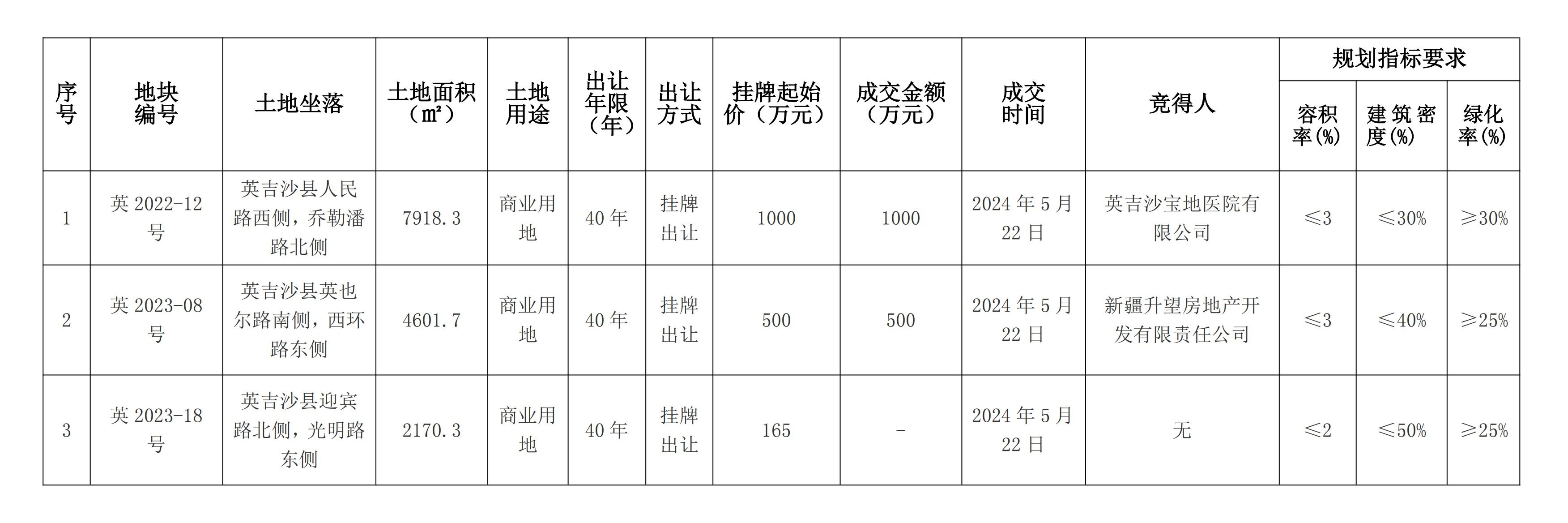英吉沙縣自然資源局國(guó)有建設(shè)用地使用權(quán)成交結(jié)果公示