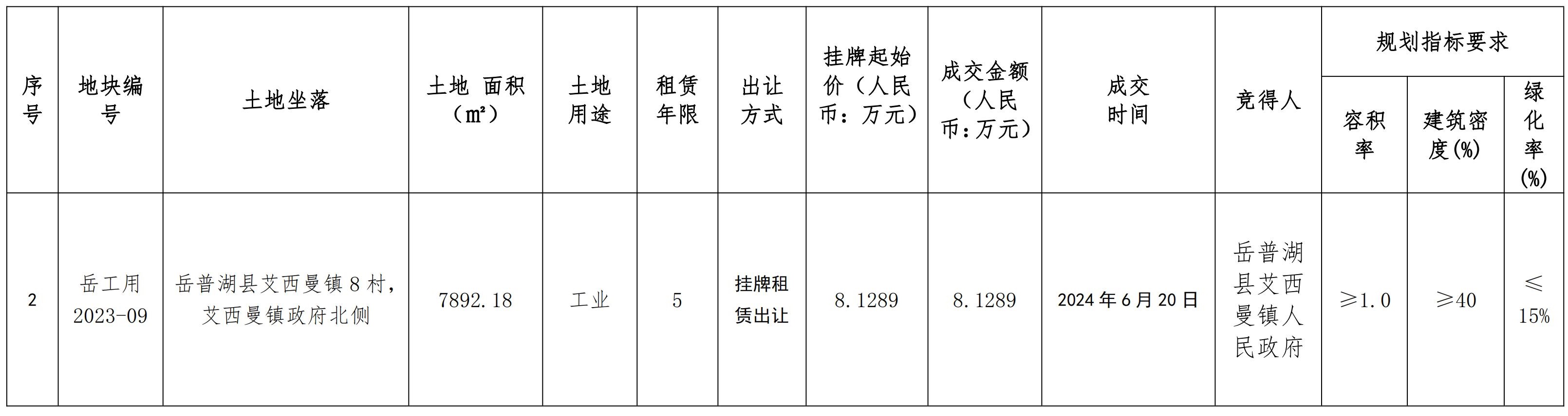 岳普湖縣國有建設用地使用權(quán)掛牌租賃出讓成交結(jié)果公示