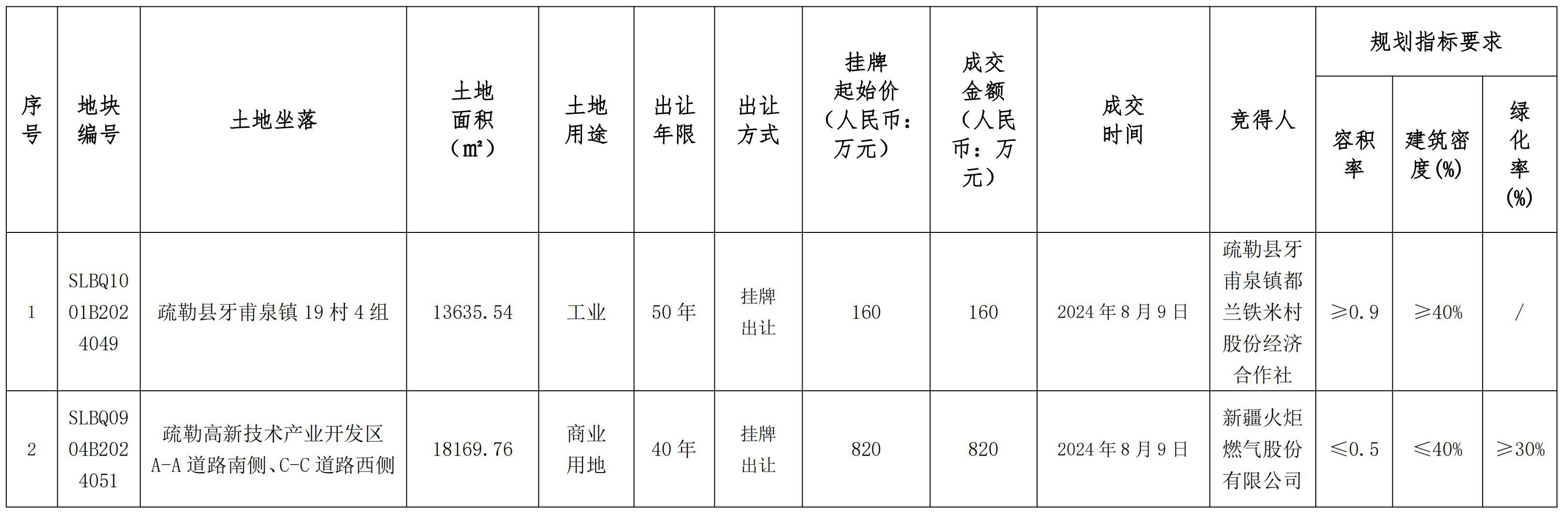 疏勒縣國(guó)有建設(shè)用地使用權(quán)掛牌出讓成交結(jié)果公示