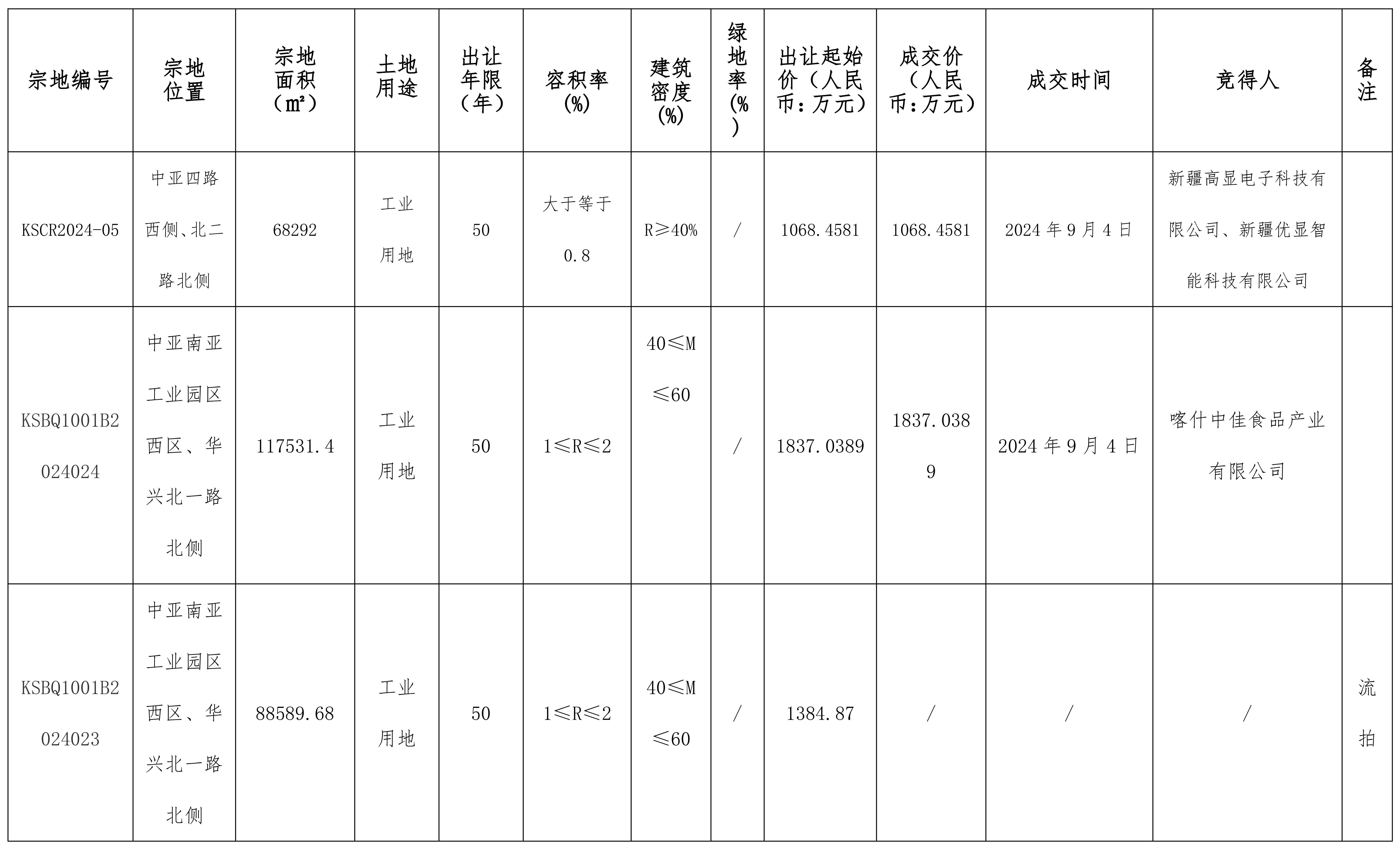 (喀市自然成交公示字[2024]13號)