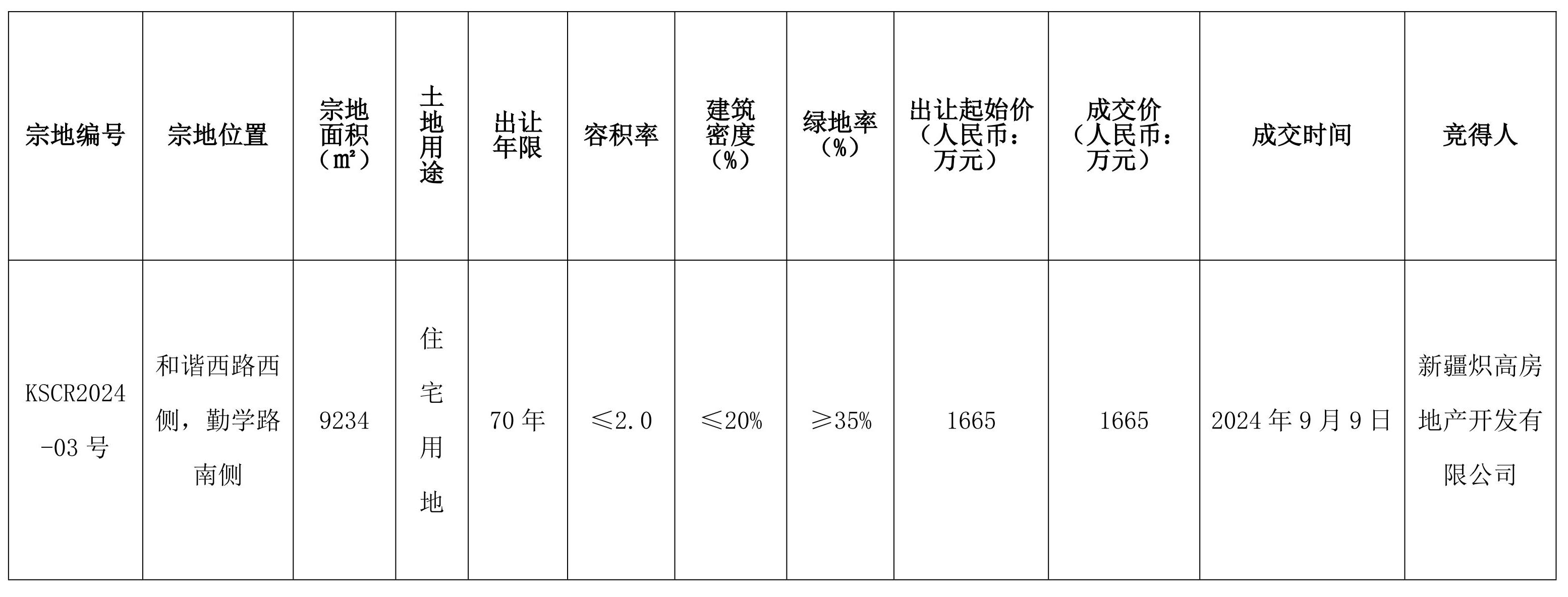 (喀市自然成交公示字[2024]15號)