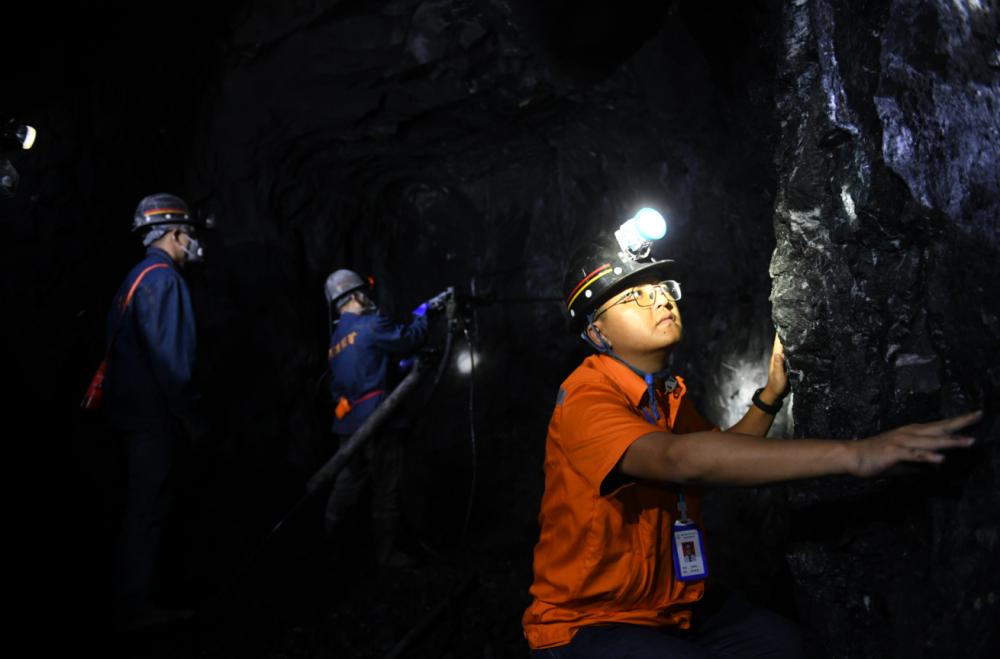 ▲7月6日,城口縣高發(fā)鋇礦有限公司,西部鋇礦資源勘查開(kāi)發(fā)研究院首席工程師趙德虎正在查看礦層產(chǎn)狀。記者張錦輝 攝/視覺(jué)重慶