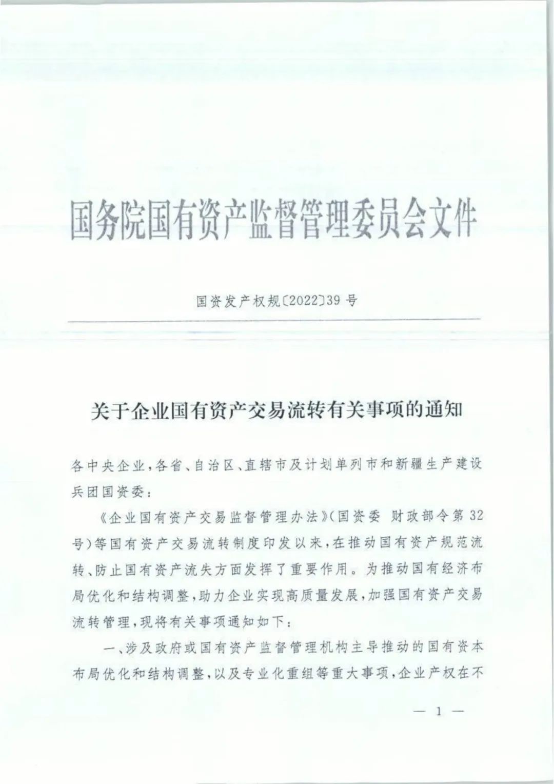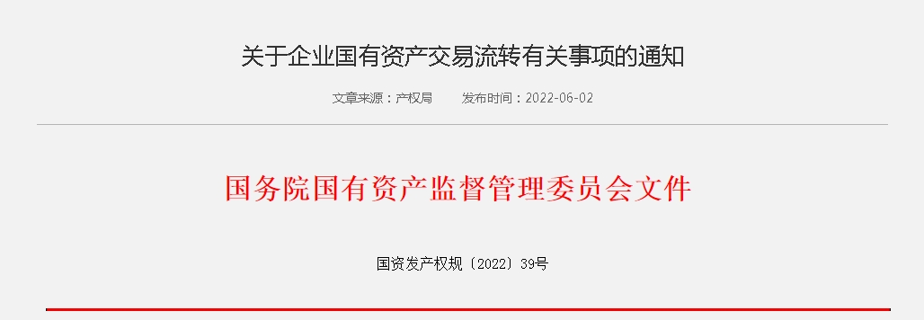 《企業(yè)國有資產(chǎn)交易監(jiān)督管理辦法》(國資委 財政部令第32號)等國有資產(chǎn)交易流轉(zhuǎn)制度印發(fā)以來,在推動國有資產(chǎn)規(guī)范流轉(zhuǎn)、防止國有資產(chǎn)流失方面發(fā)揮了重要作用。為推動國有經(jīng)濟(jì)布局優(yōu)化和結(jié)構(gòu)調(diào)整,助力企業(yè)實現(xiàn)高質(zhì)量發(fā)展,加強(qiáng)國有資產(chǎn)交易流轉(zhuǎn)管理,現(xiàn)將有關(guān)事項通知如下: