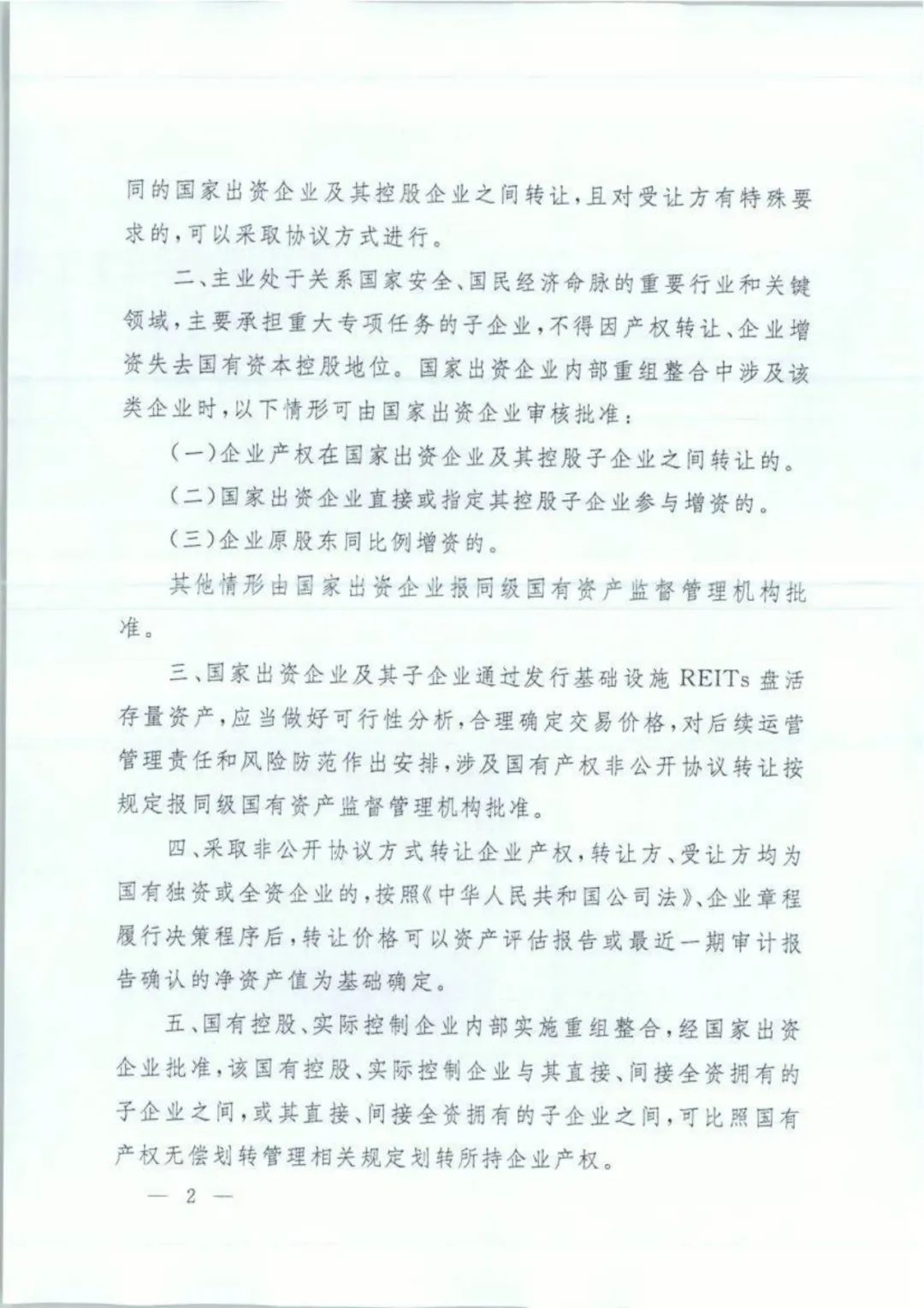 三、國家出資企業(yè)及其子企業(yè)通過發(fā)行基礎(chǔ)設(shè)施REITs盤活存量資產(chǎn),應(yīng)當(dāng)做好可行性分析,合理確定交易價格,對后續(xù)運(yùn)營管理責(zé)任和風(fēng)險防范作出安排,涉及國有產(chǎn)權(quán)非公開協(xié)議轉(zhuǎn)讓按規(guī)定報同級國有資產(chǎn)監(jiān)督管理機(jī)構(gòu)批準(zhǔn)。