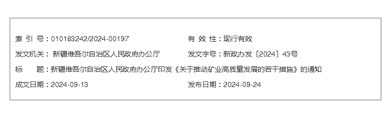新疆維吾爾自治區(qū)人民政府辦公廳印發(fā)《關于推動礦業(yè)高質量發(fā)展的若干措施》的通知