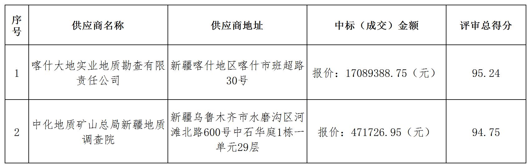 1.中標結果: