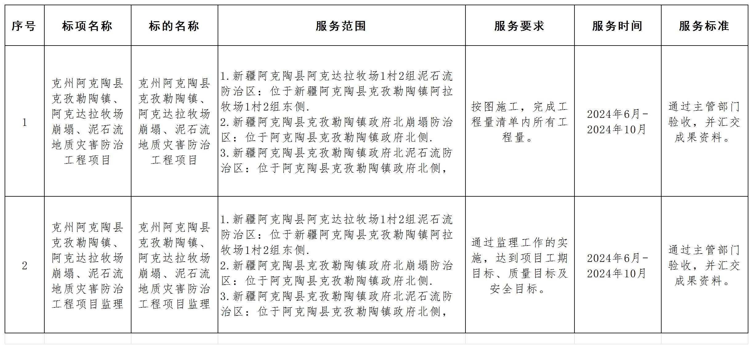 二、項目名稱: 克州阿克陶縣克孜勒陶鎮(zhèn)、阿克達拉牧場崩塌、泥石流地質災害防治工程項目