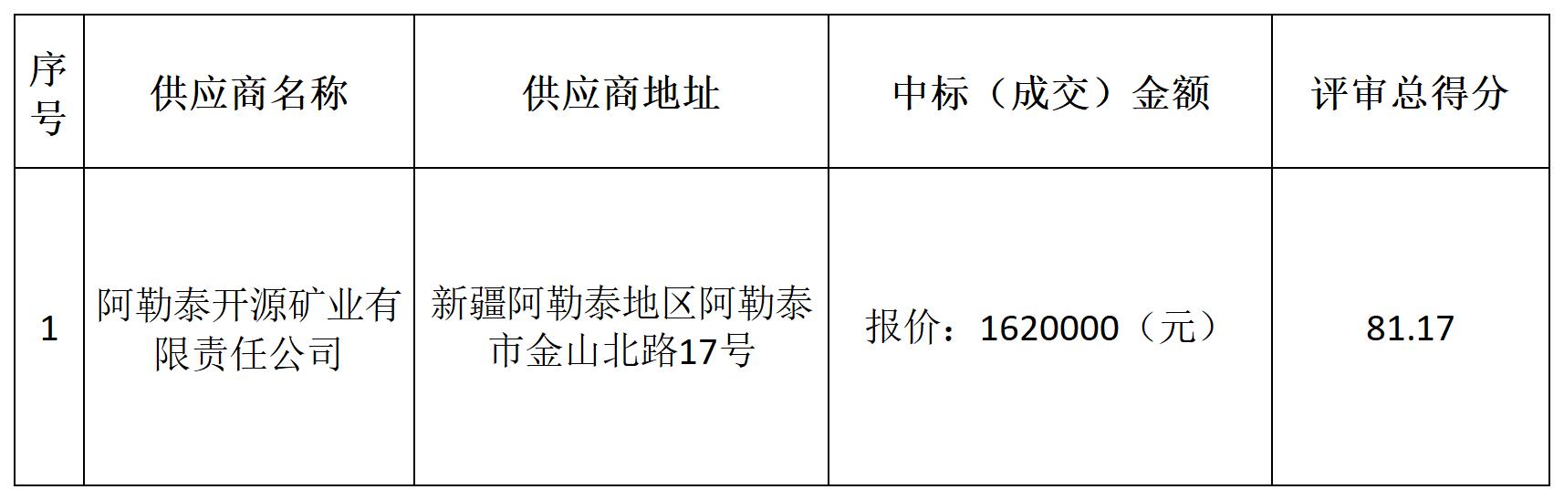 1.中標結(jié)果: