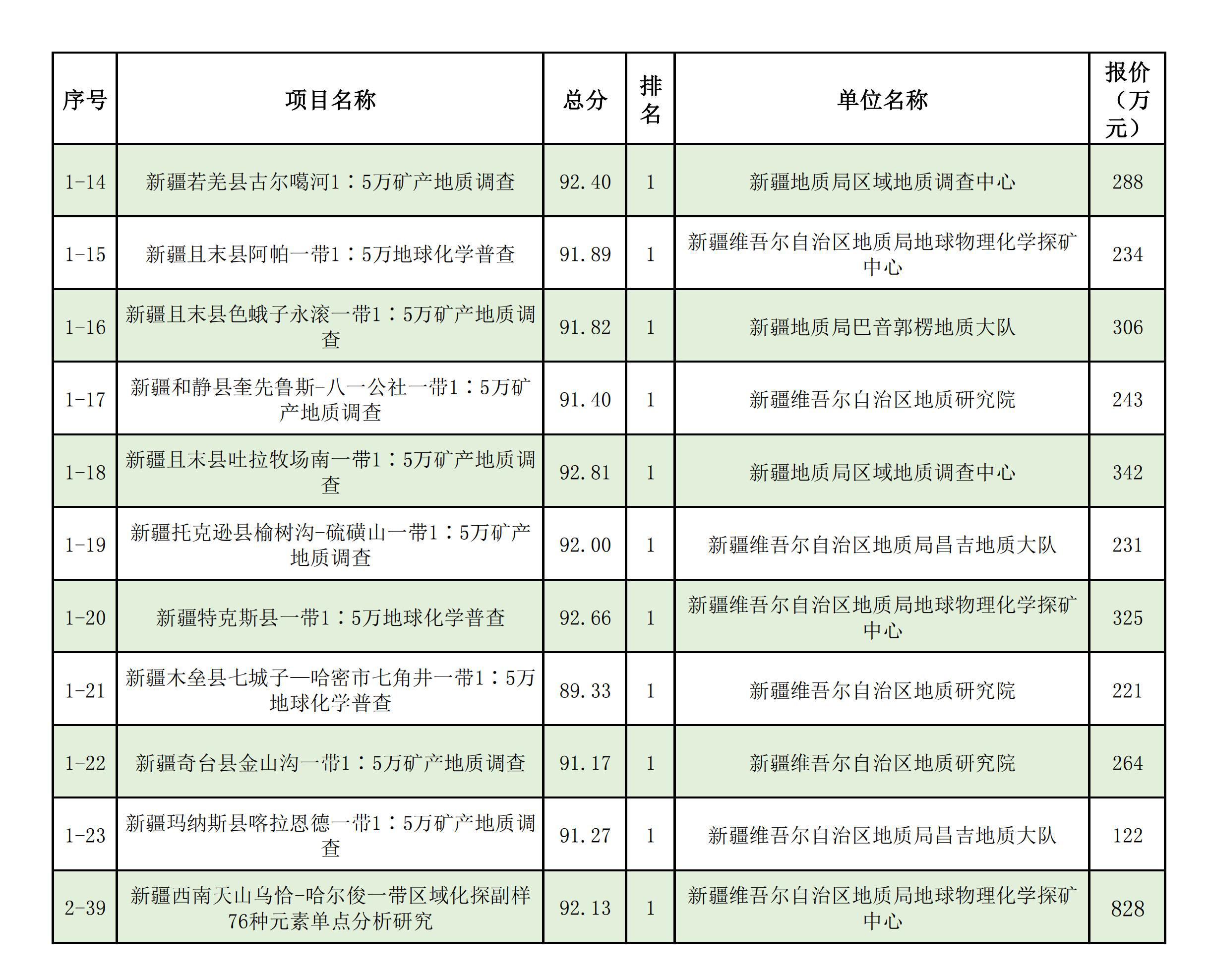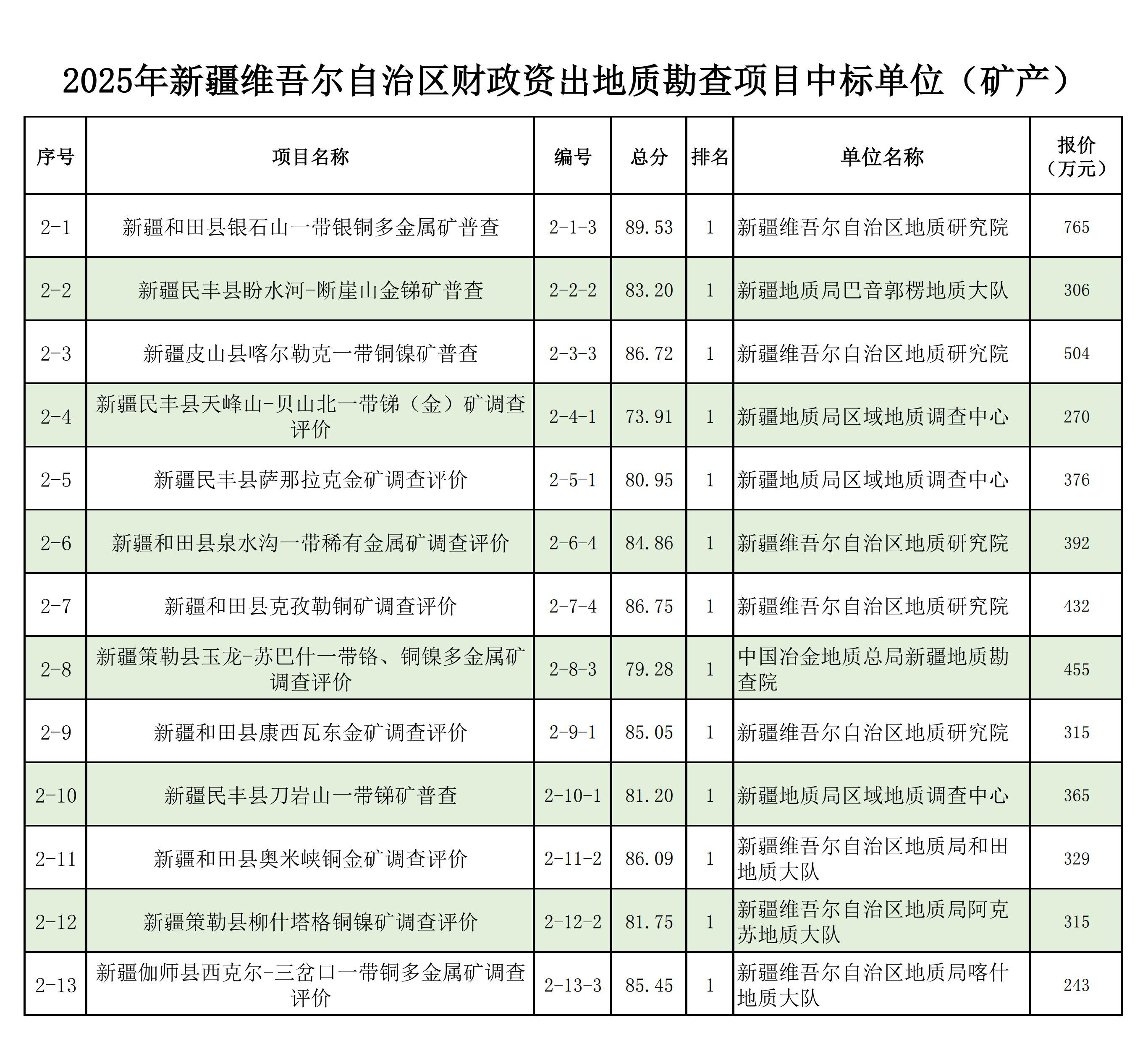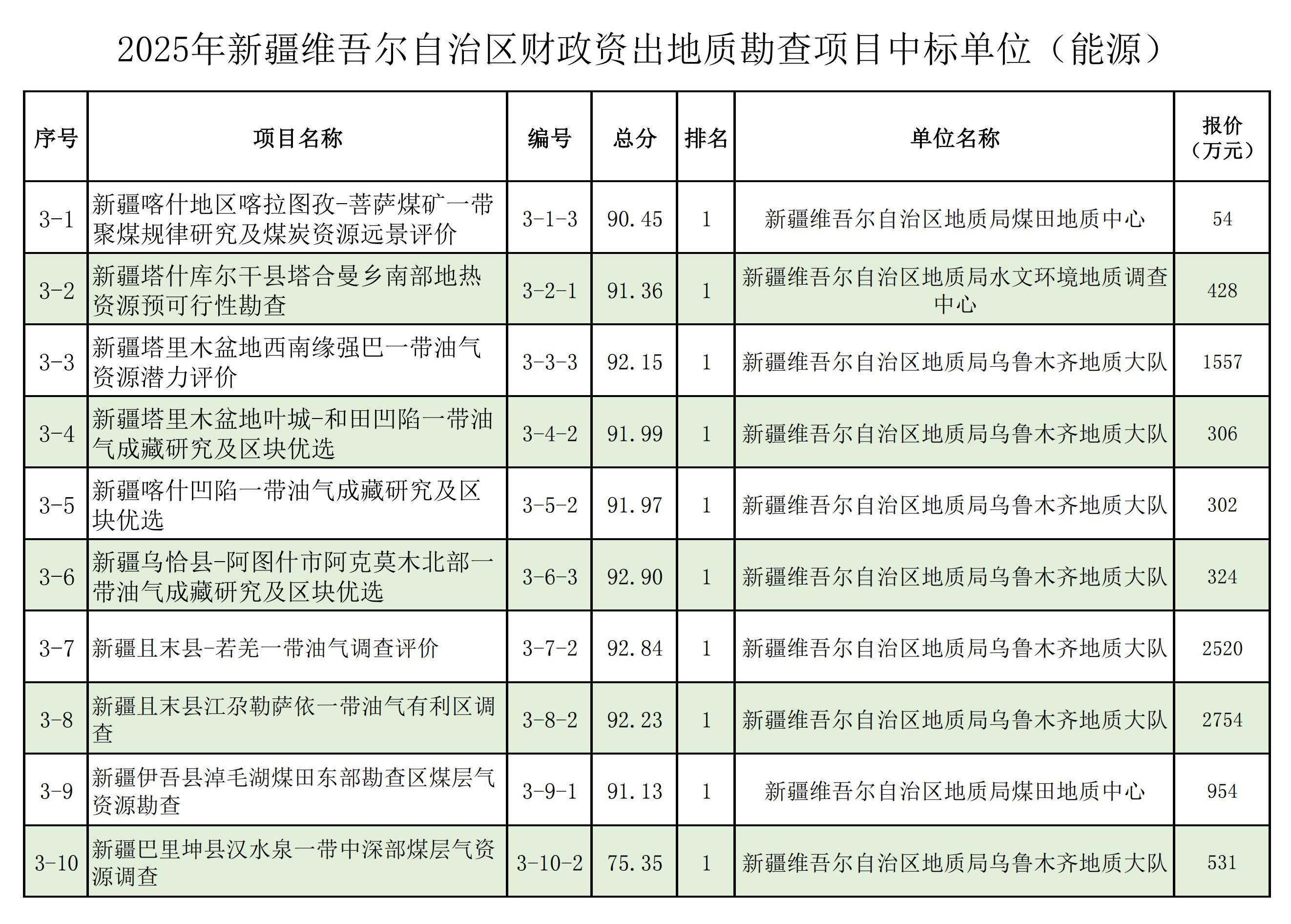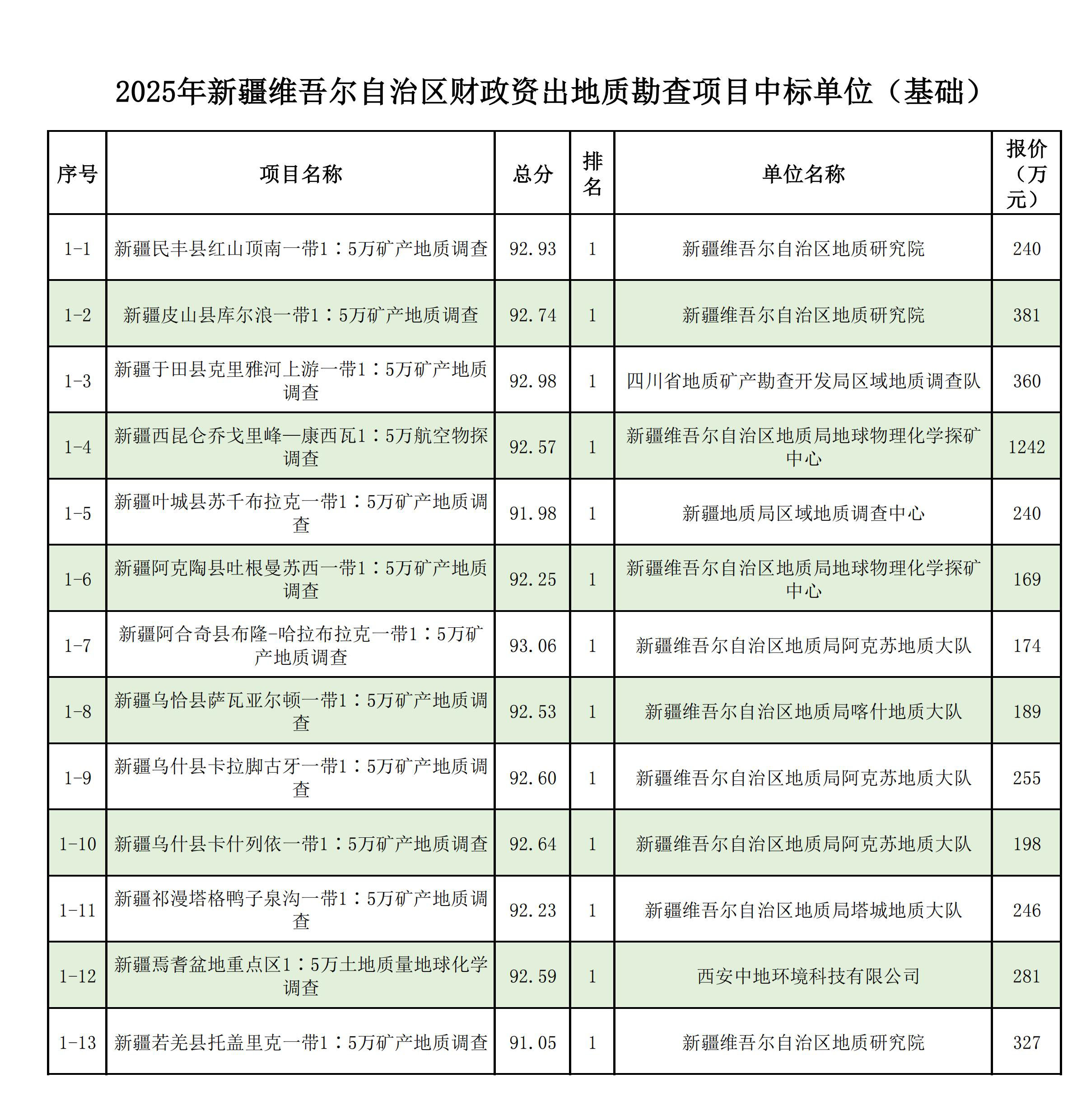 1.2025年新疆維吾爾自治區(qū)財政出資地質(zhì)勘查項目中標(biāo)單位一覽表