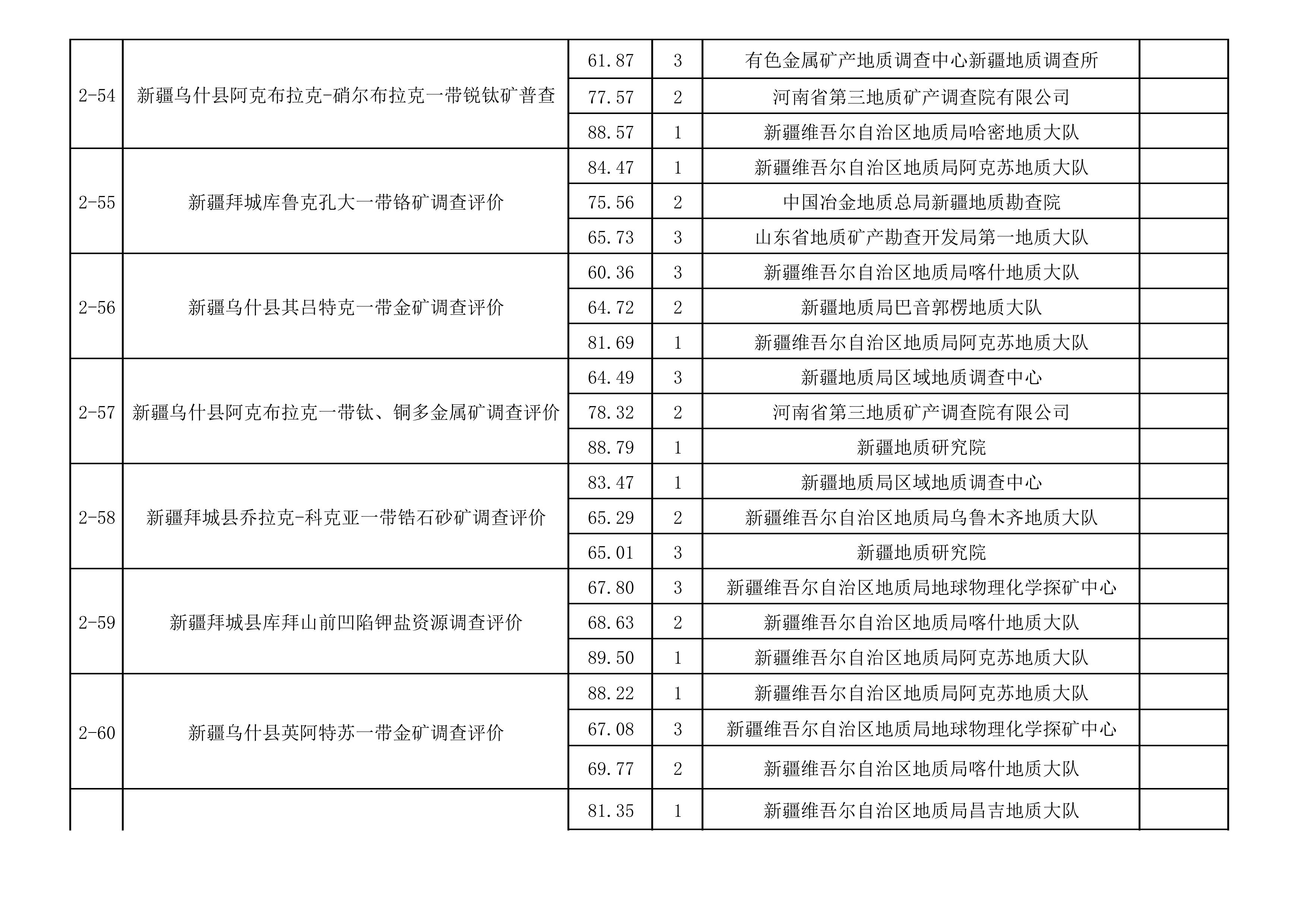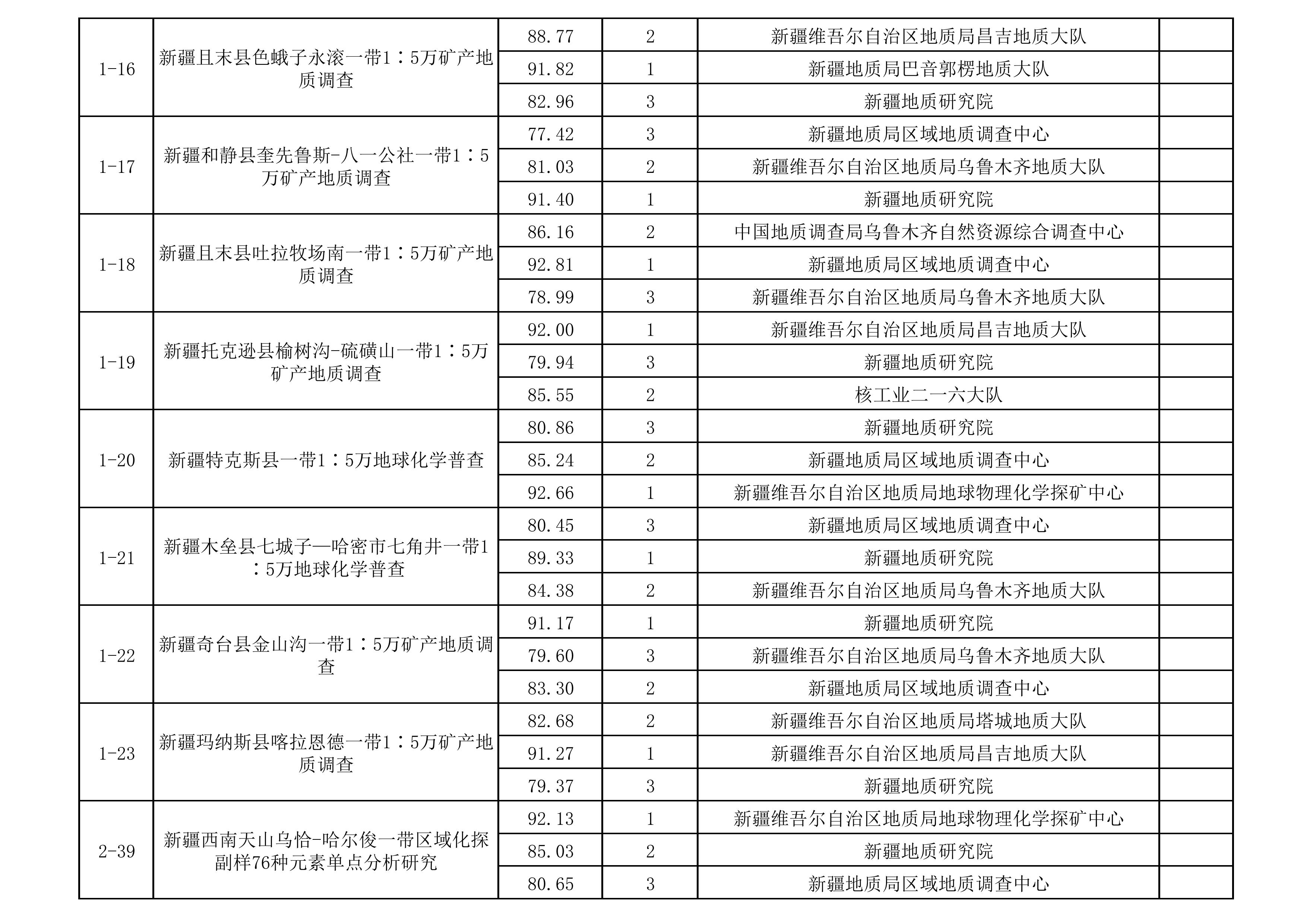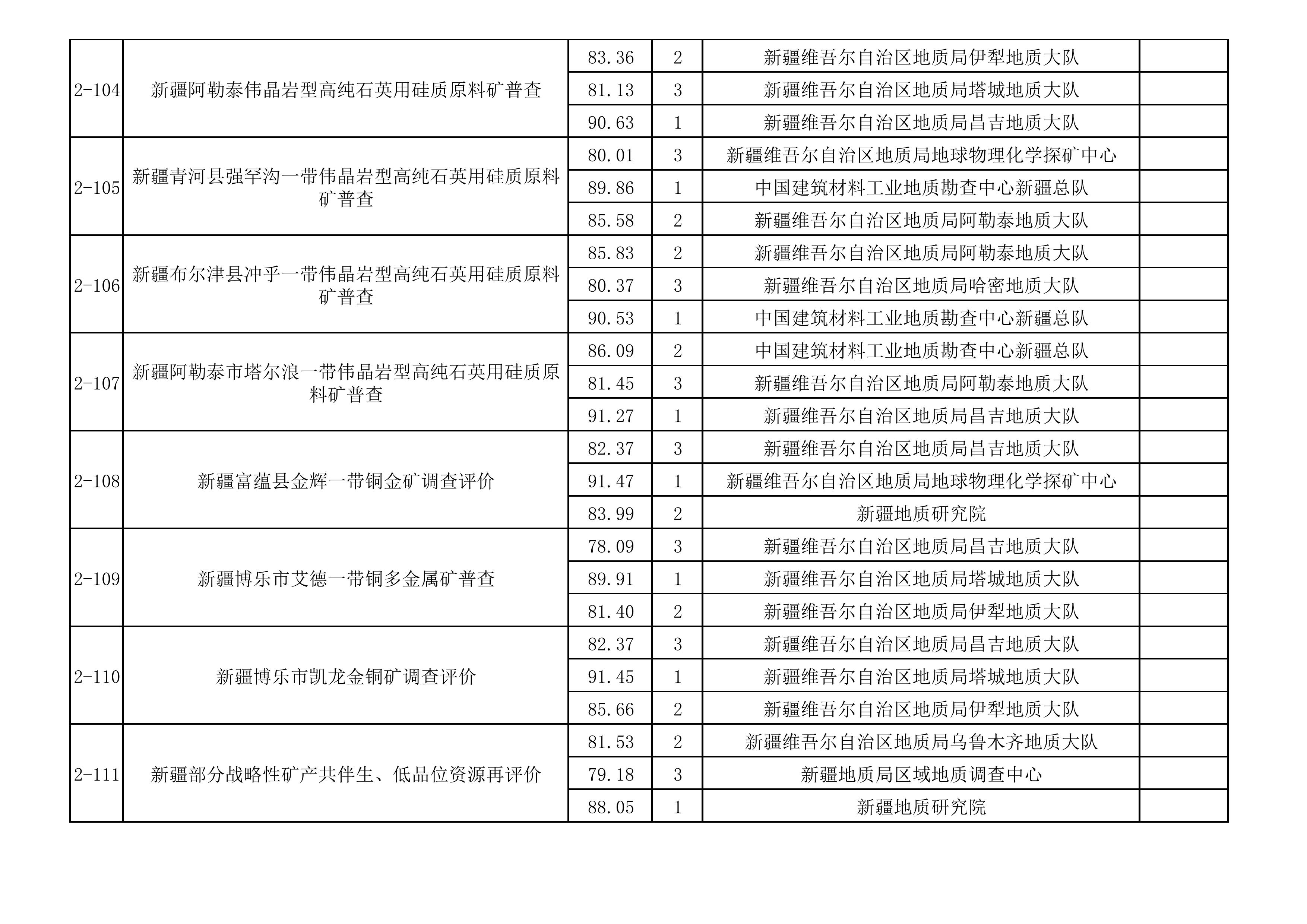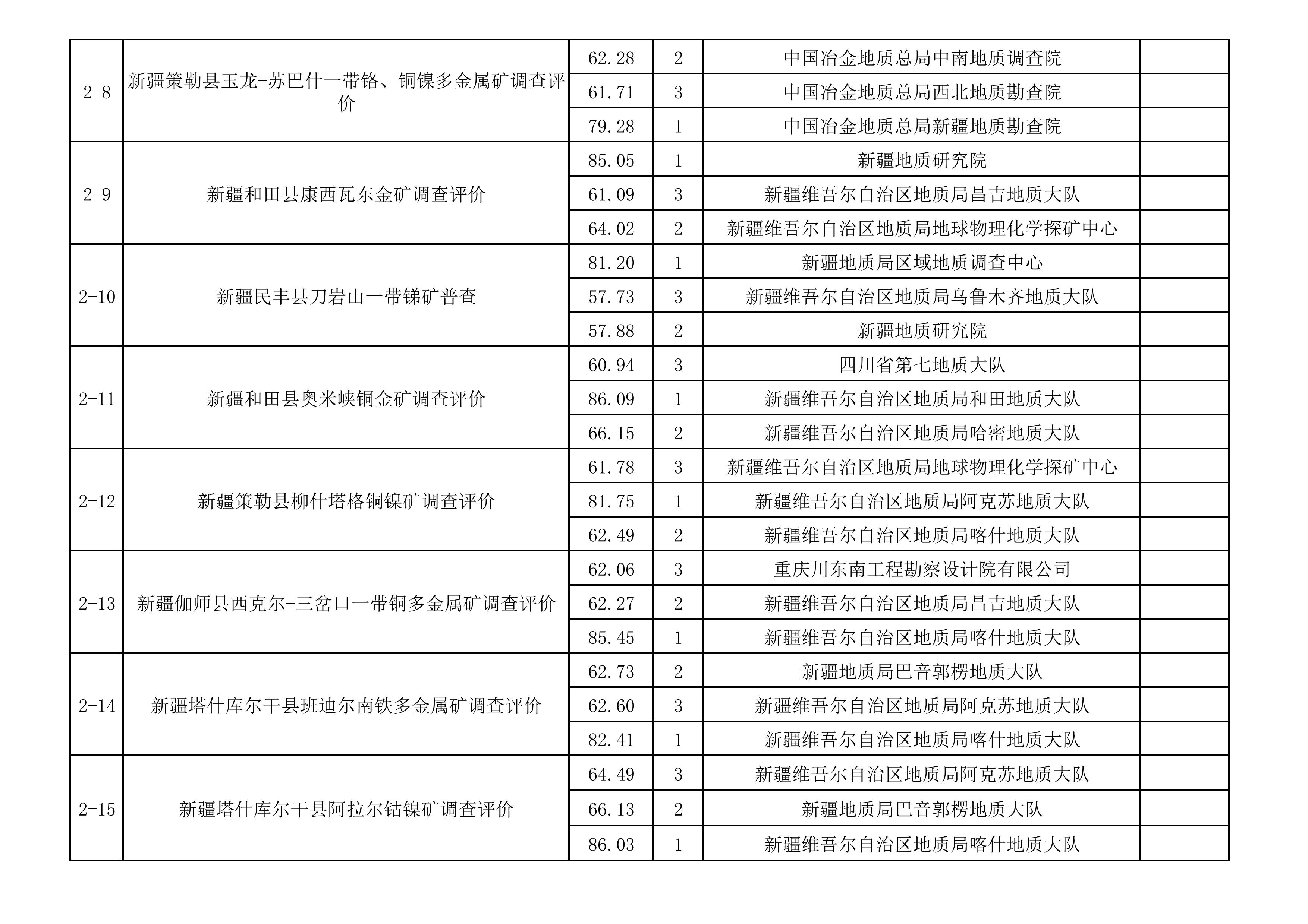 1.2025年新疆維吾爾自治區(qū)財政出資地質(zhì)勘查項目中標(biāo)單位一覽表