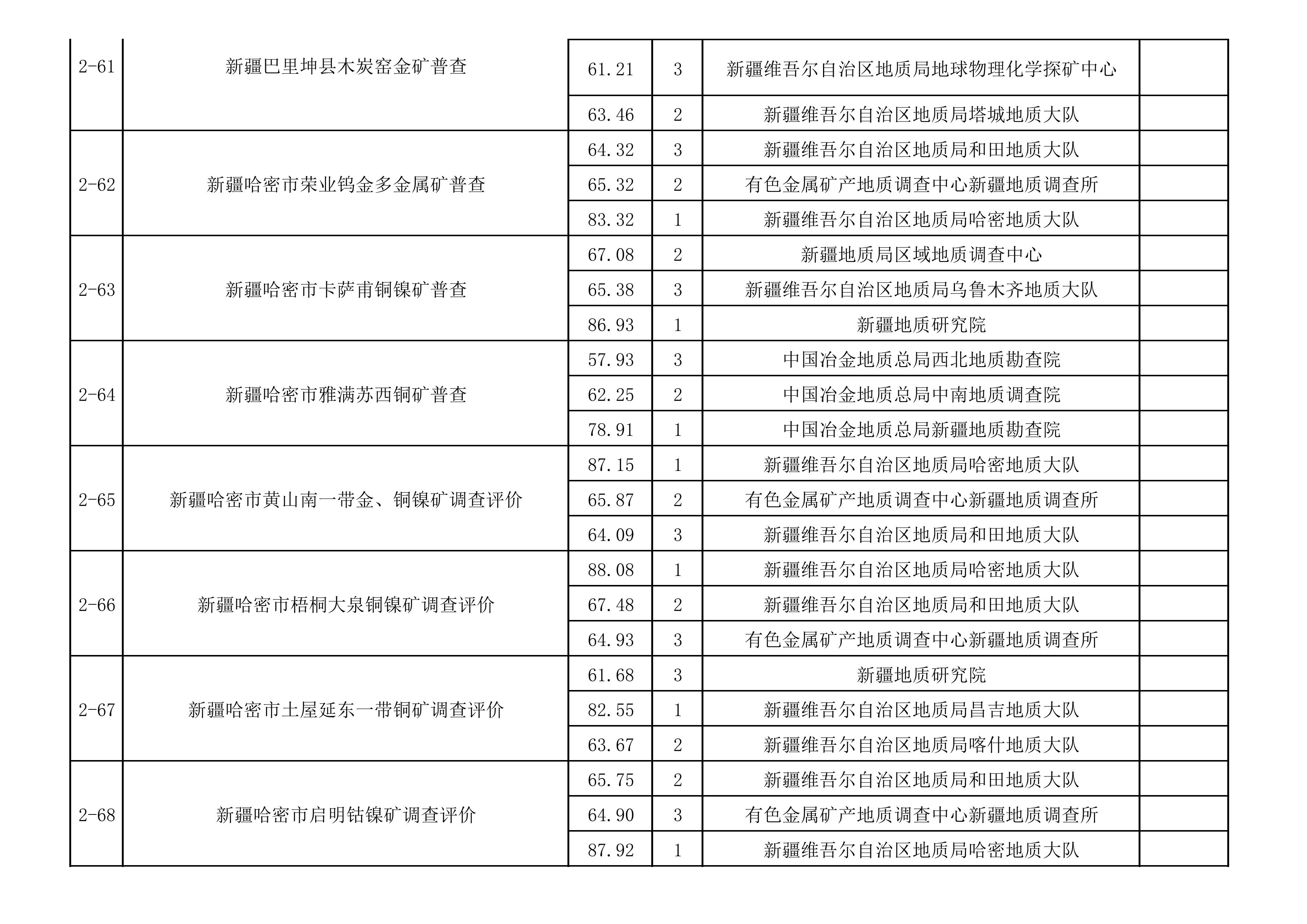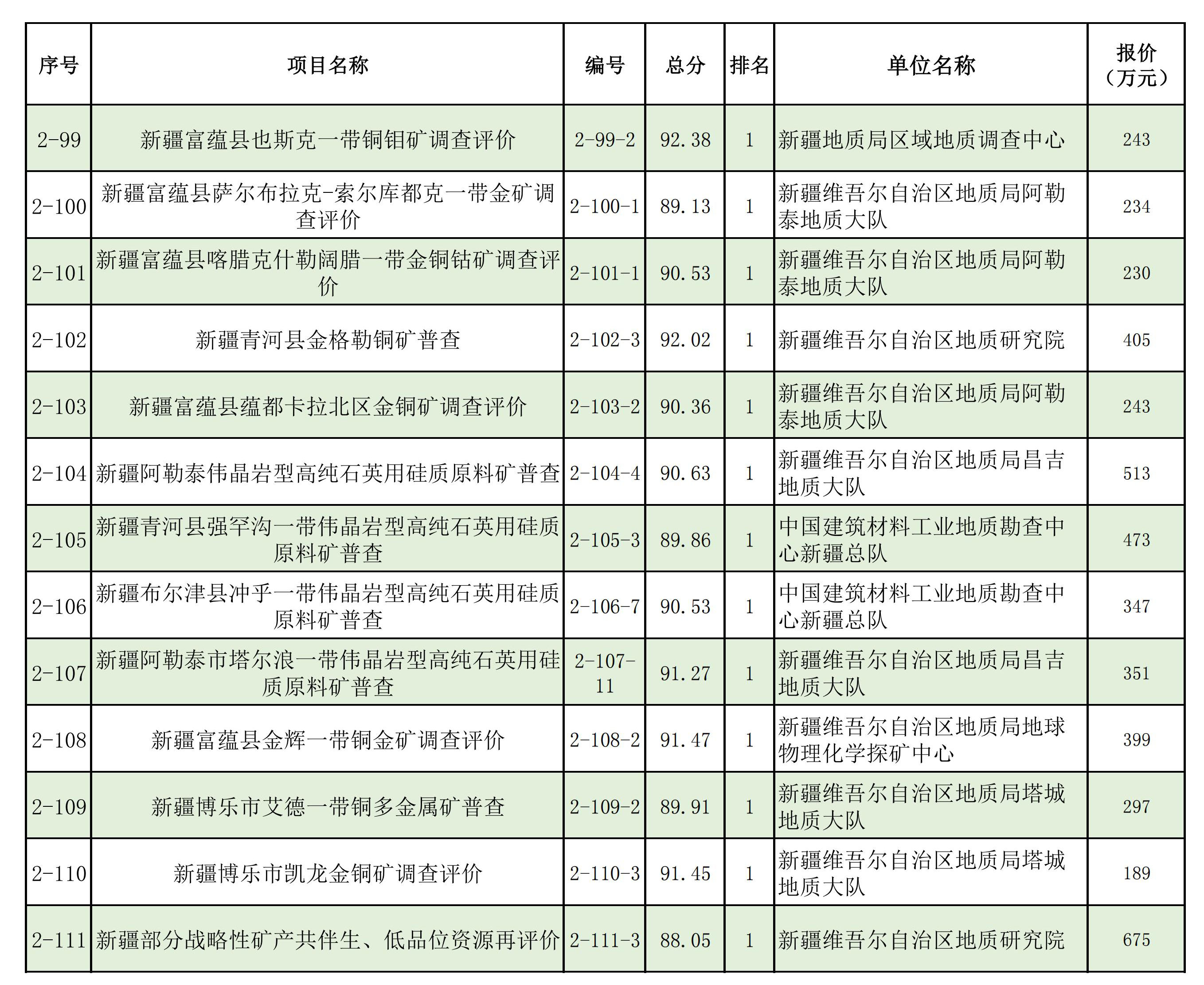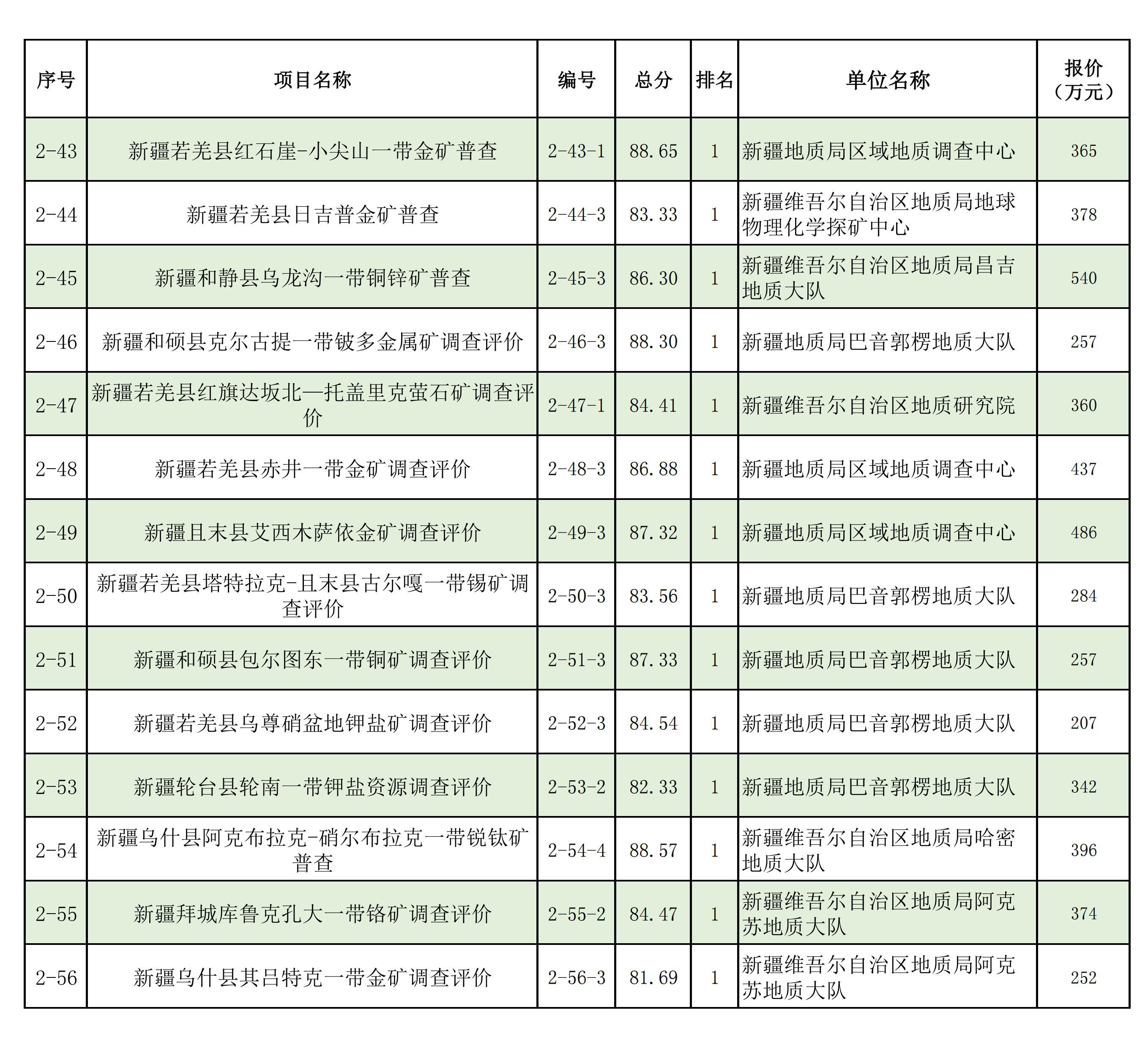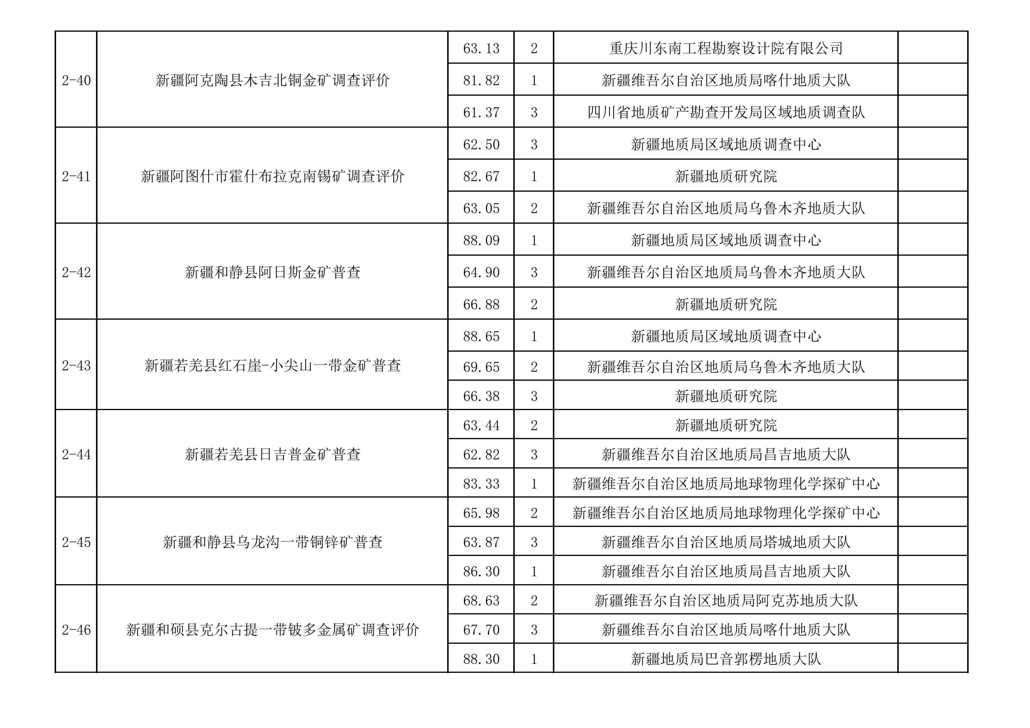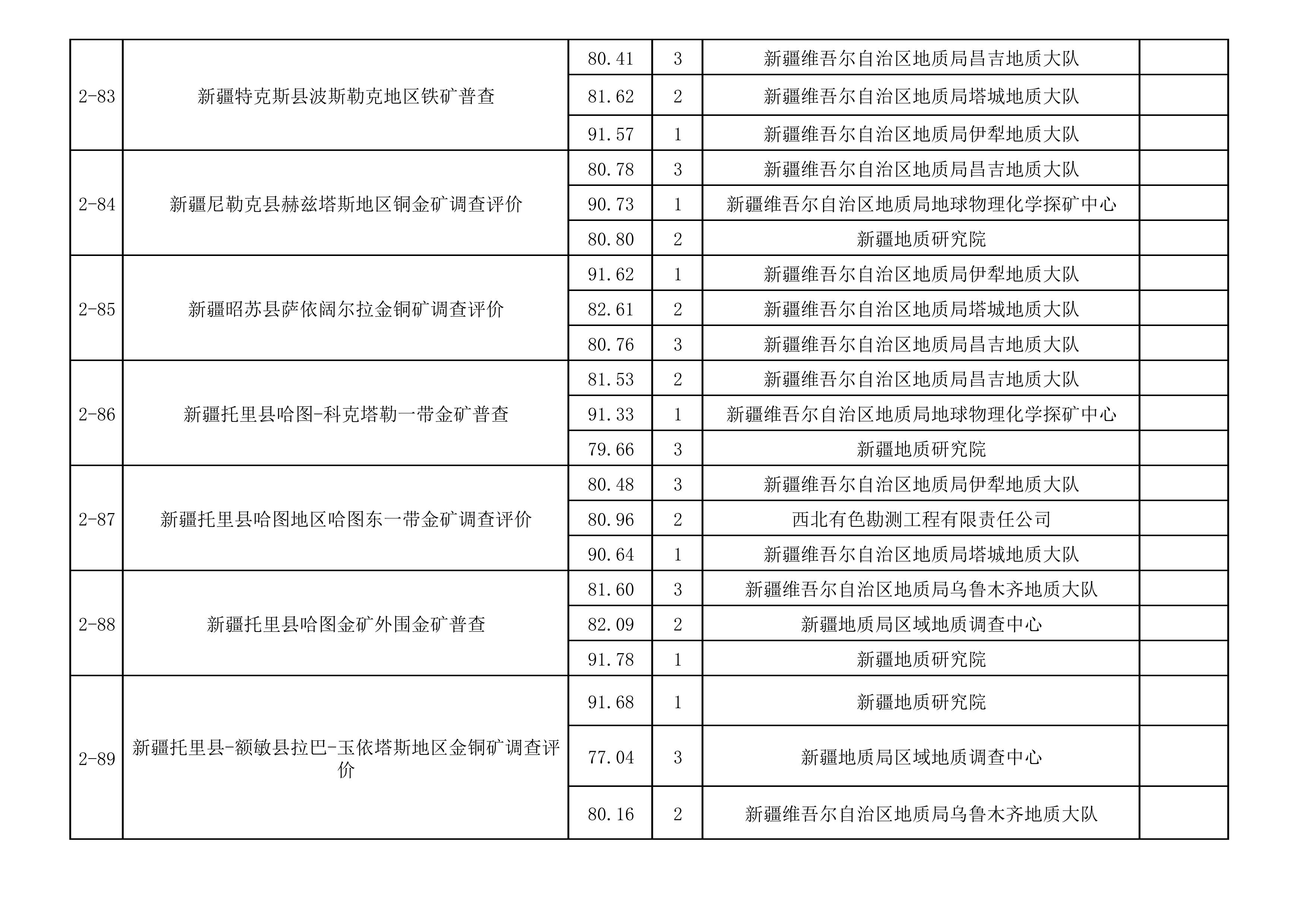 1.2025年新疆維吾爾自治區(qū)財政出資地質(zhì)勘查項目中標(biāo)單位一覽表