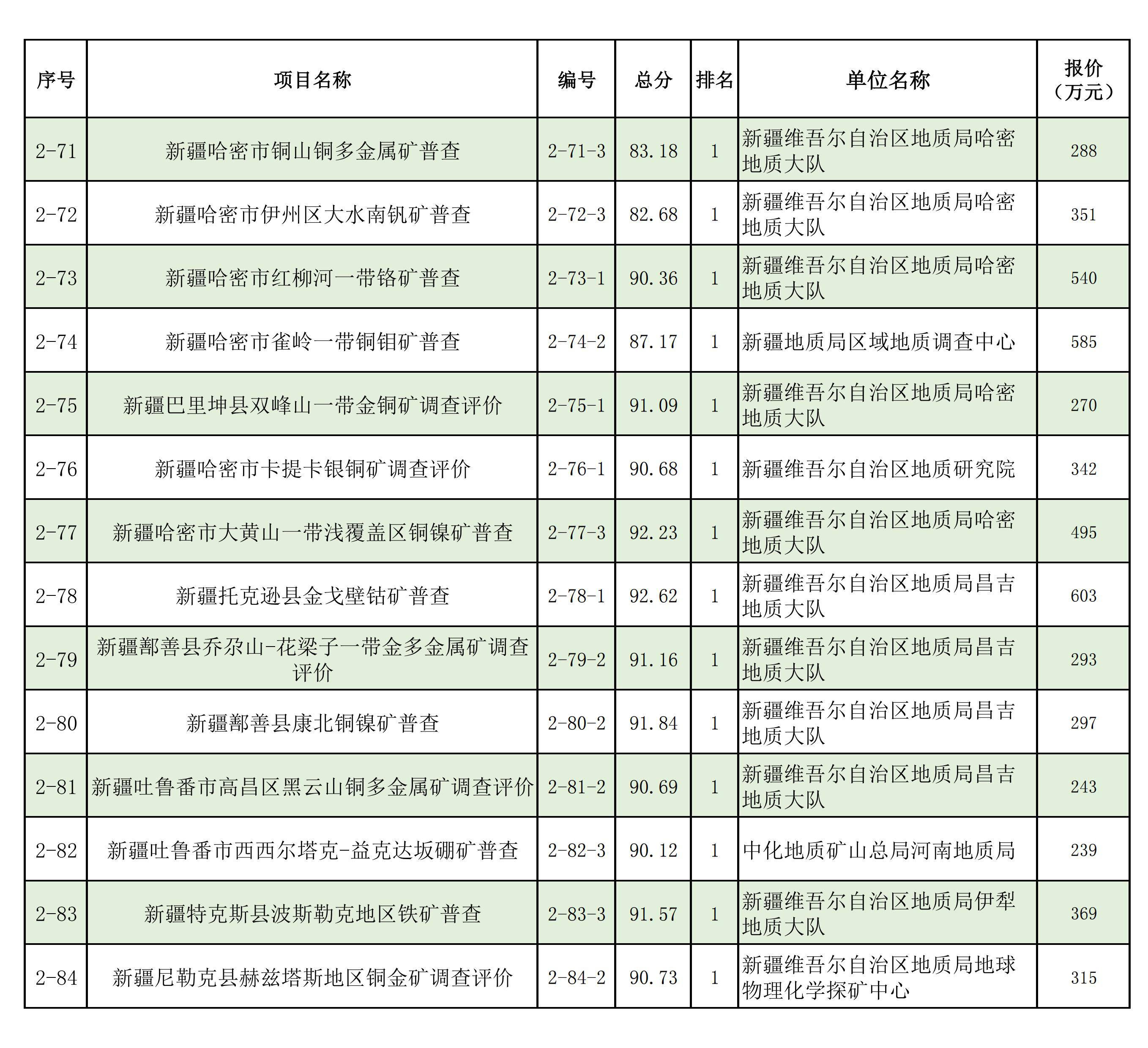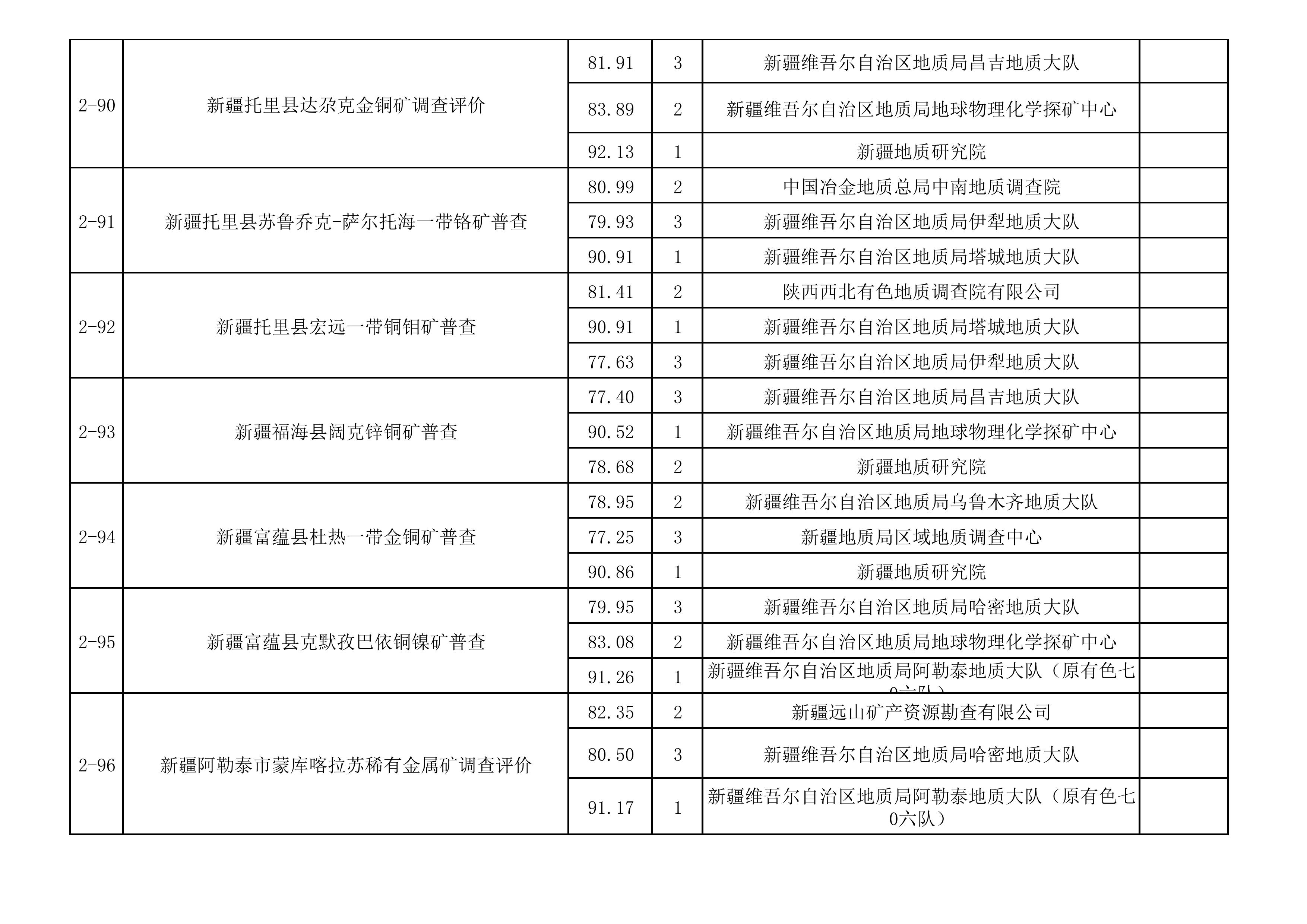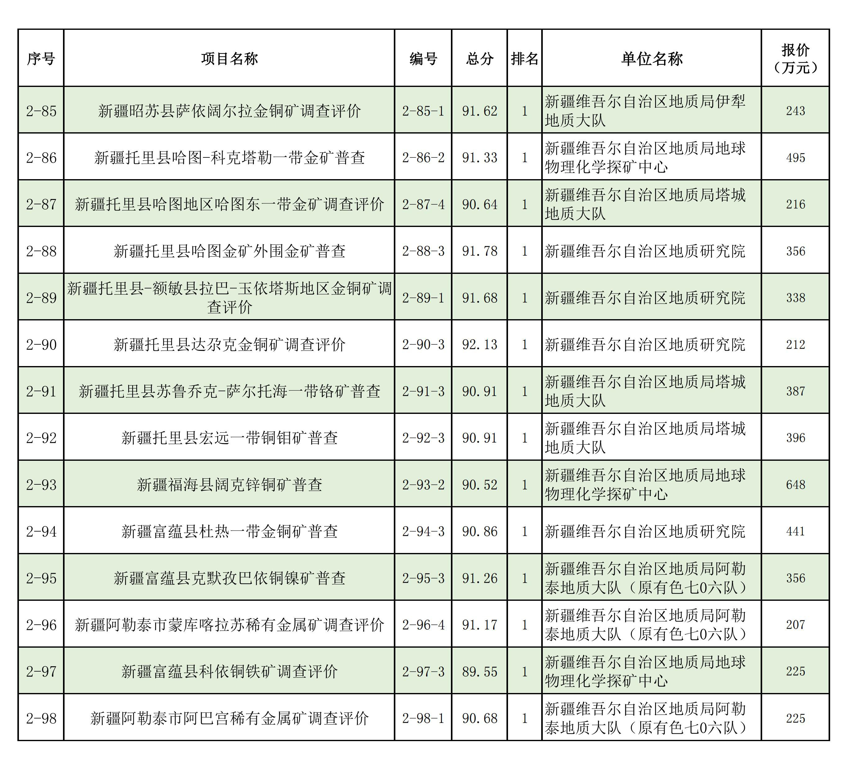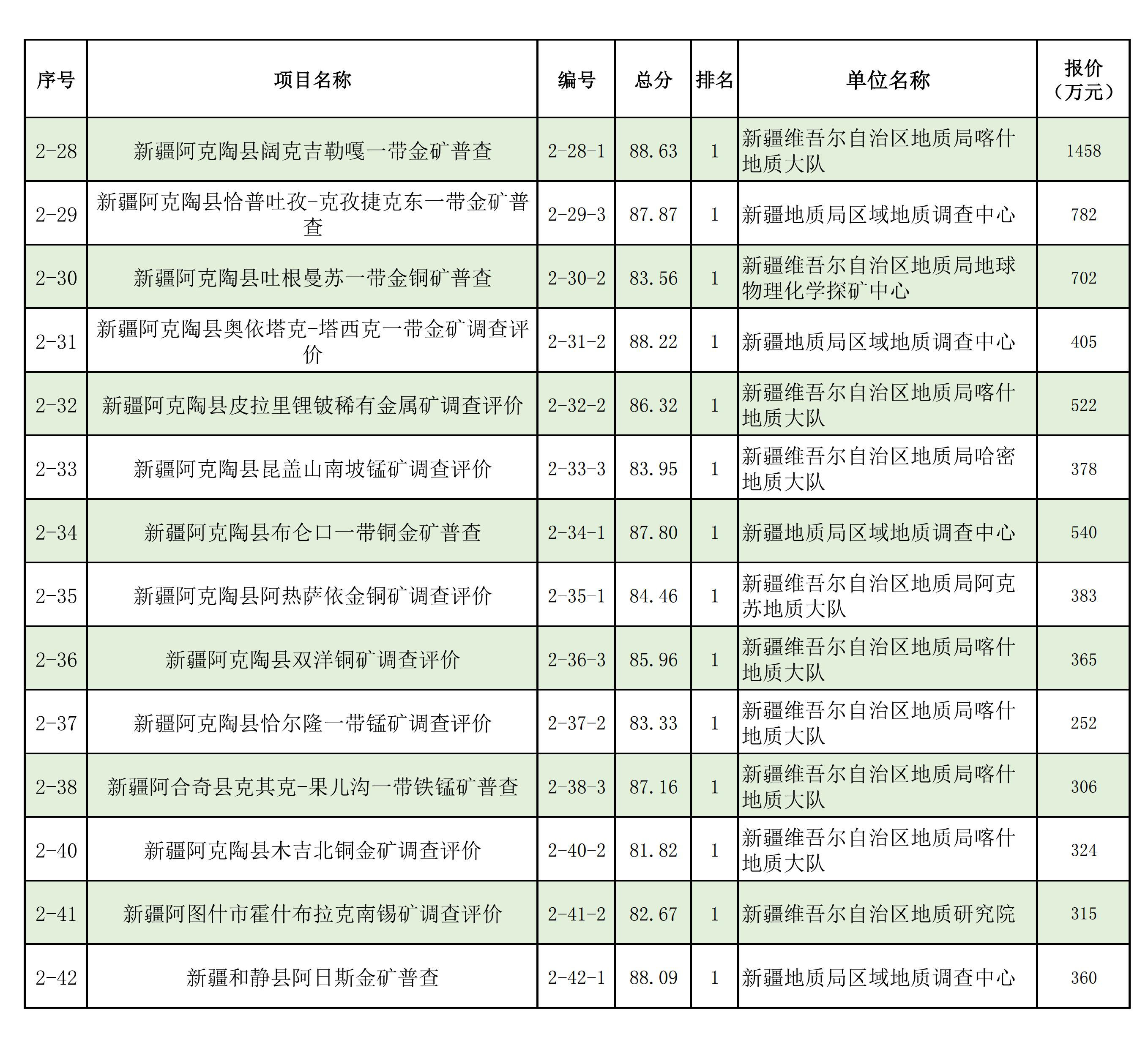1.2025年新疆維吾爾自治區(qū)財政出資地質(zhì)勘查項目中標(biāo)單位一覽表