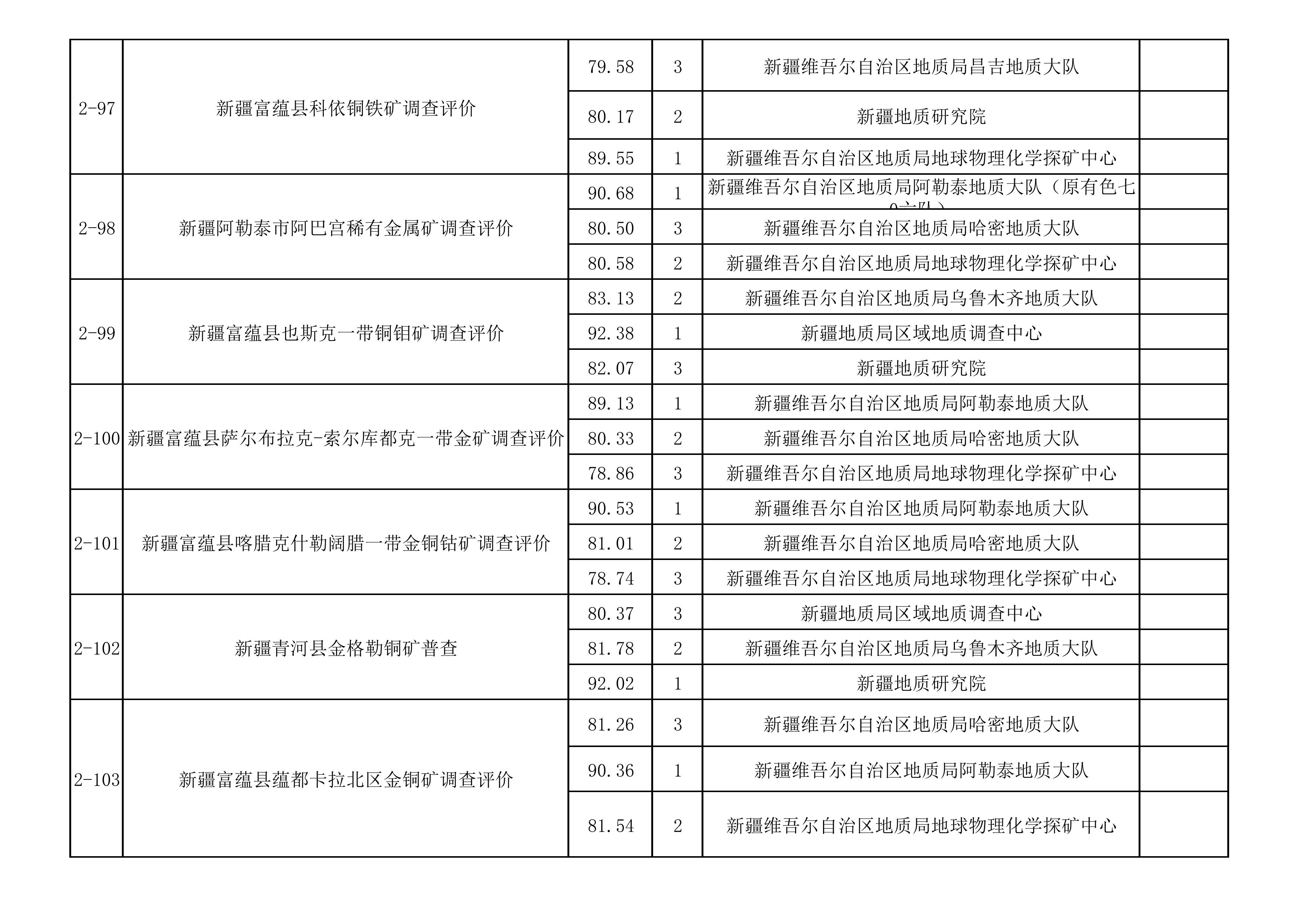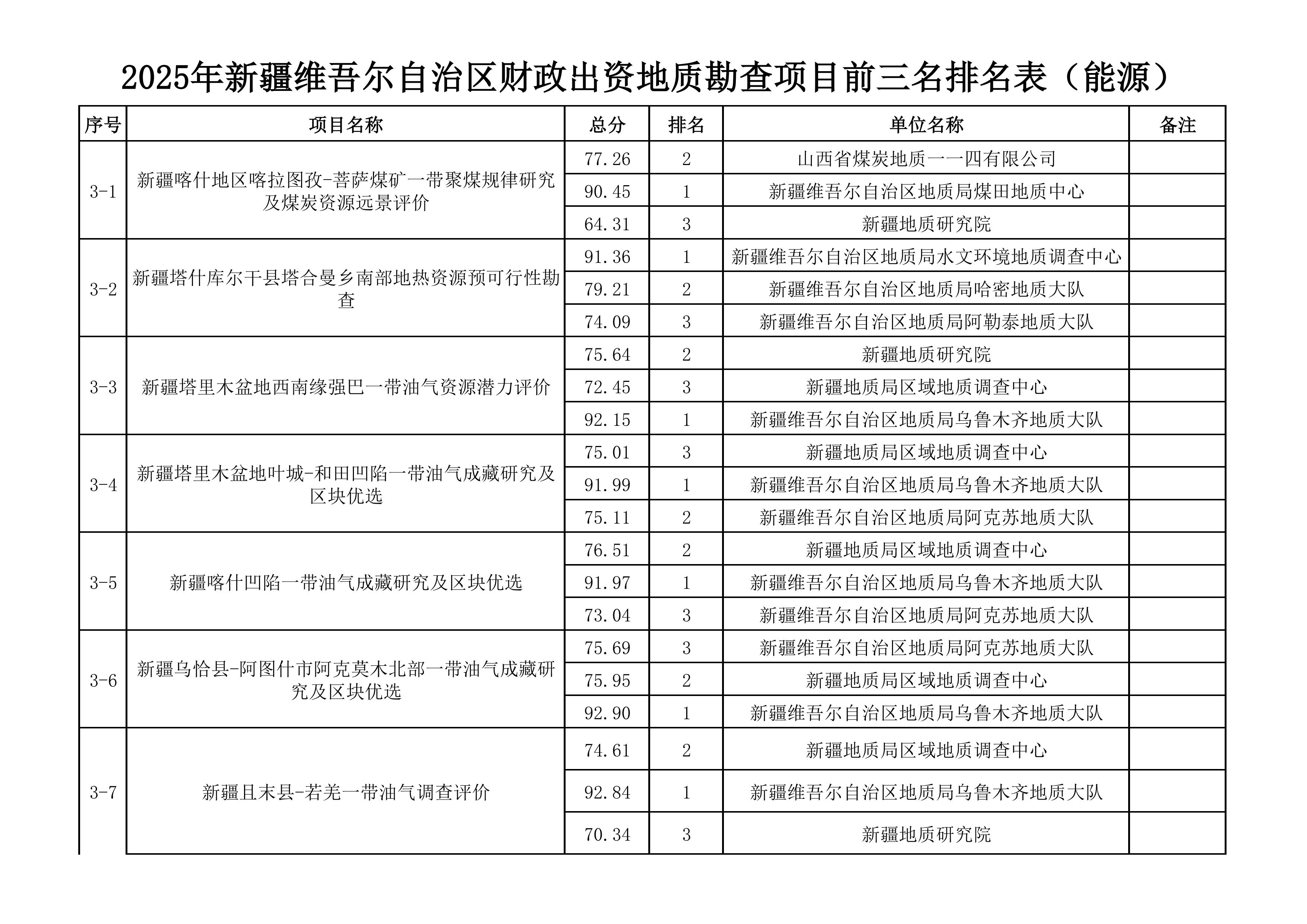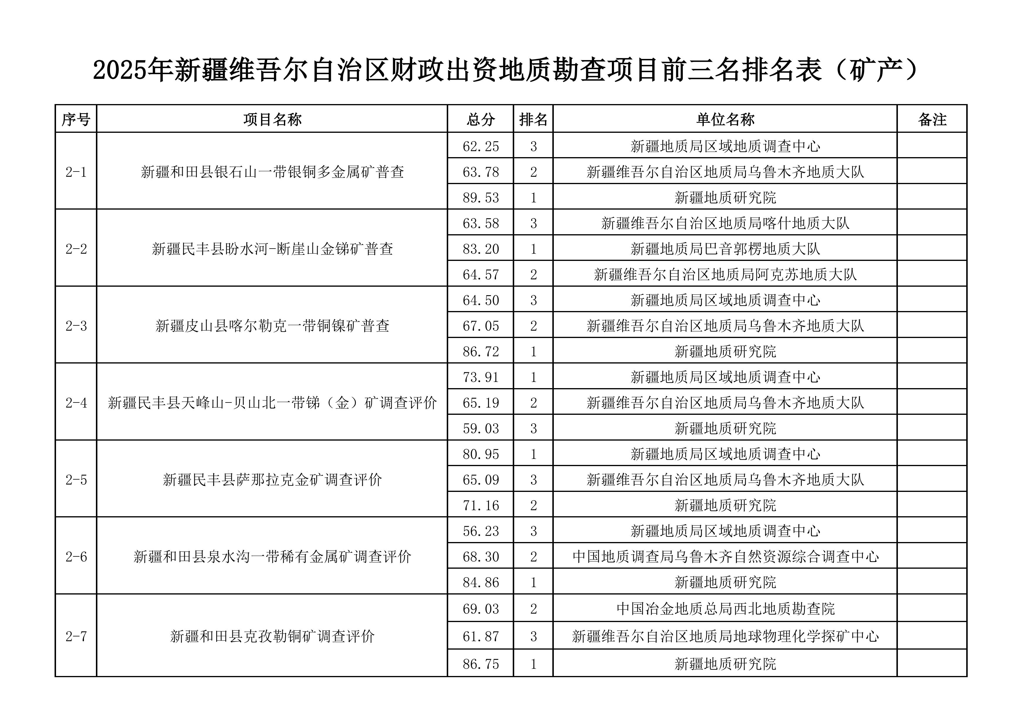 2.2025年新疆維吾爾自治區(qū)財政出資地質(zhì)勘查項目前三名一覽表