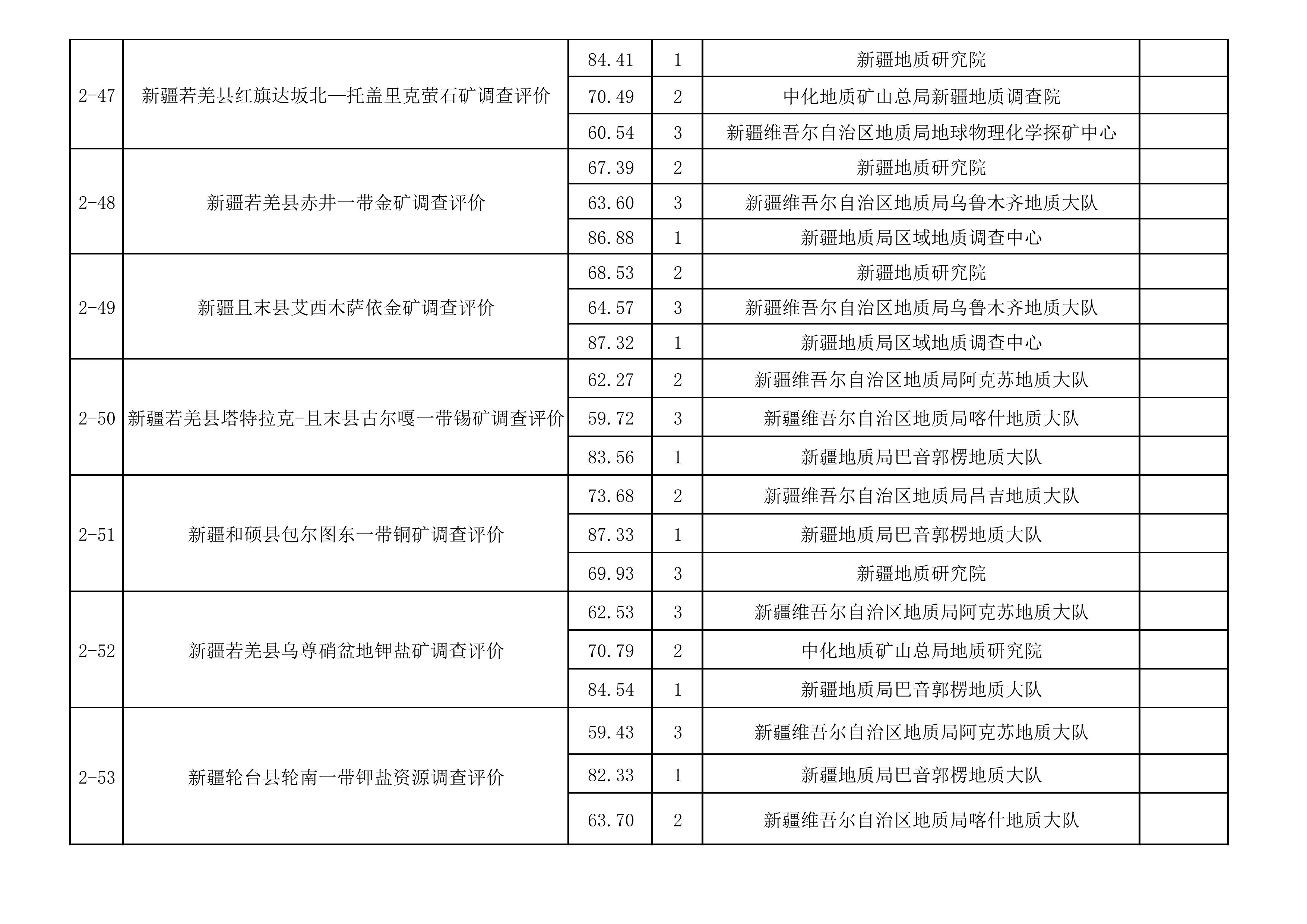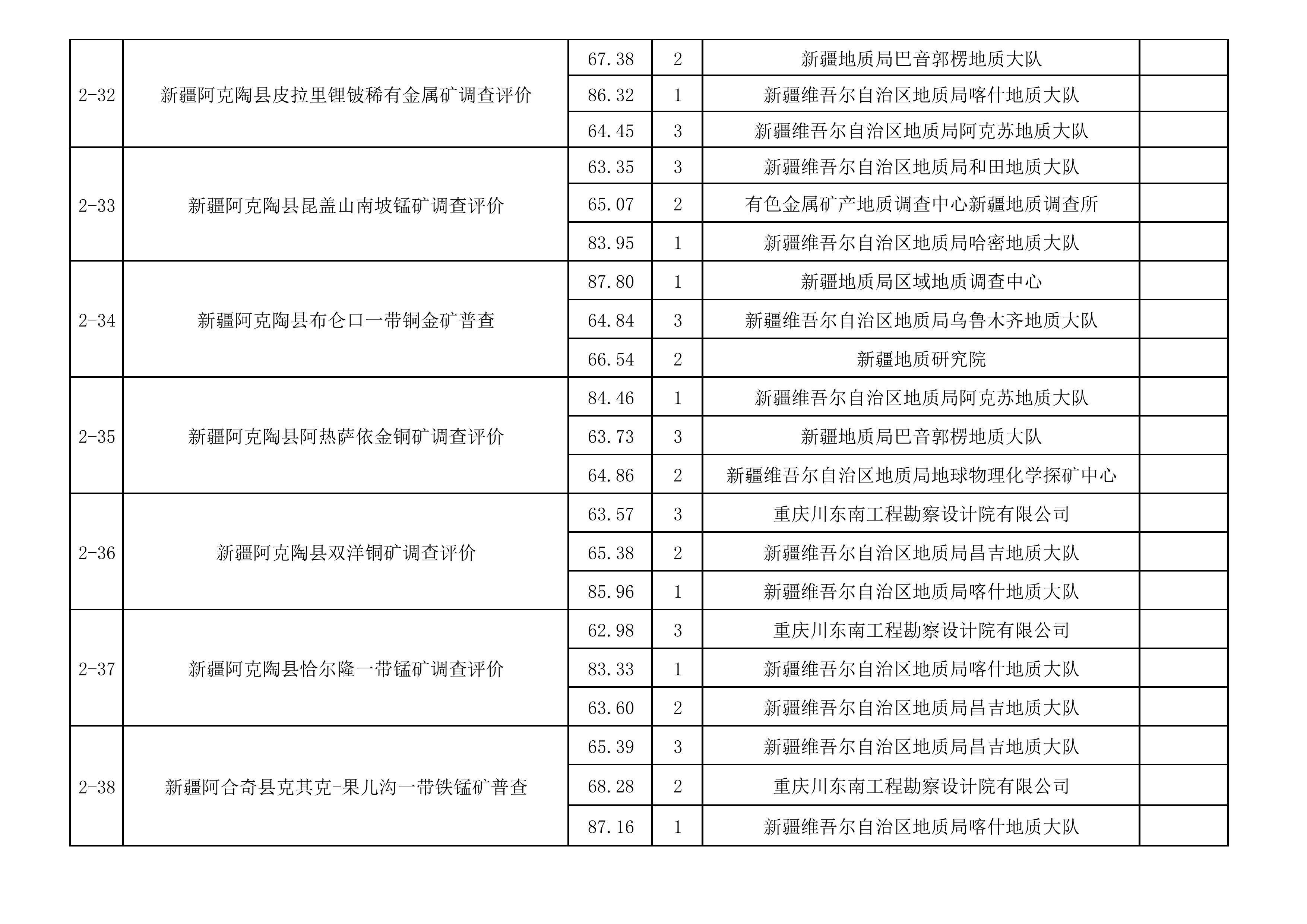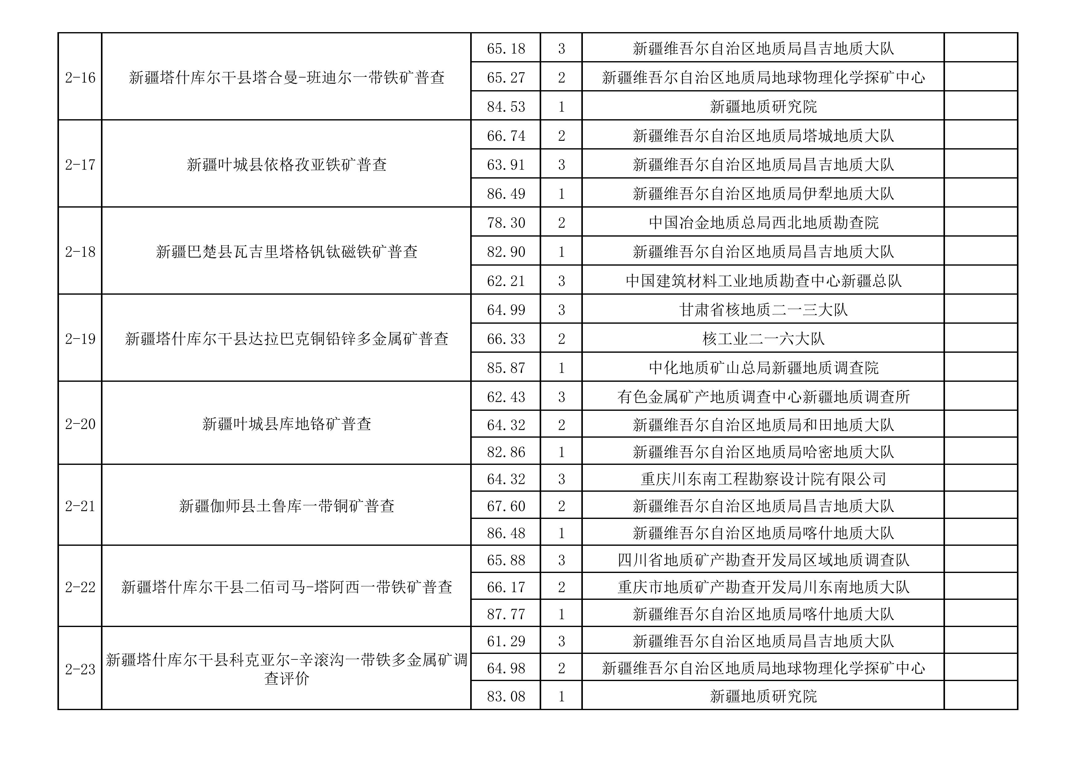 2025年新疆維吾爾自治區(qū)財政出資地質(zhì)勘查項目中標(biāo)單位一覽表
