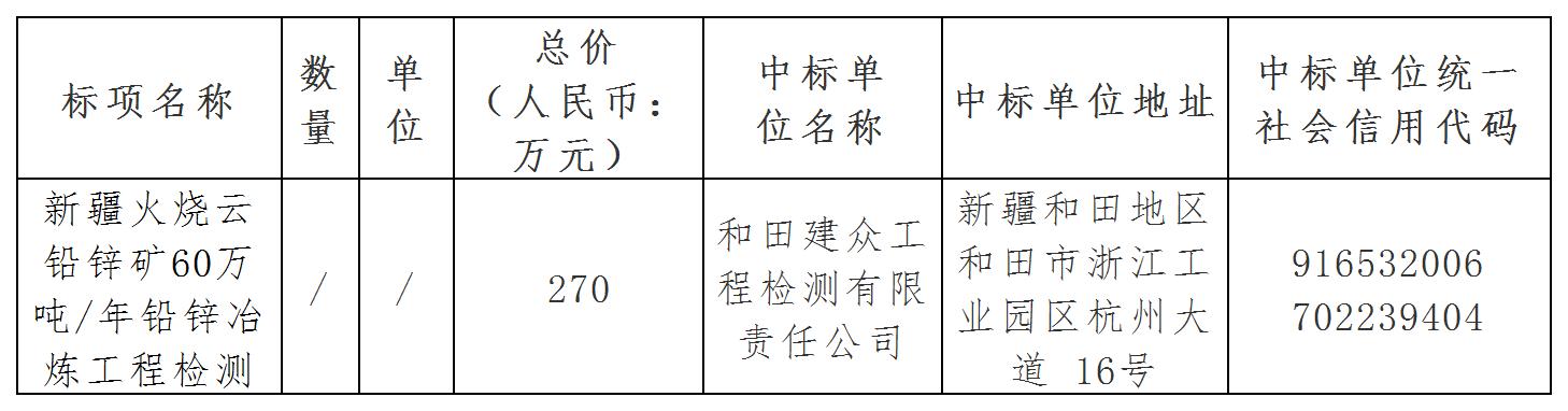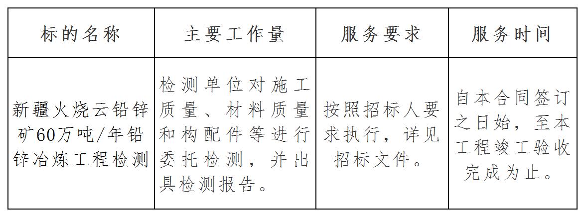 二、項目名稱:新疆火燒云鉛鋅礦60萬噸/年鉛鋅冶煉工程檢測