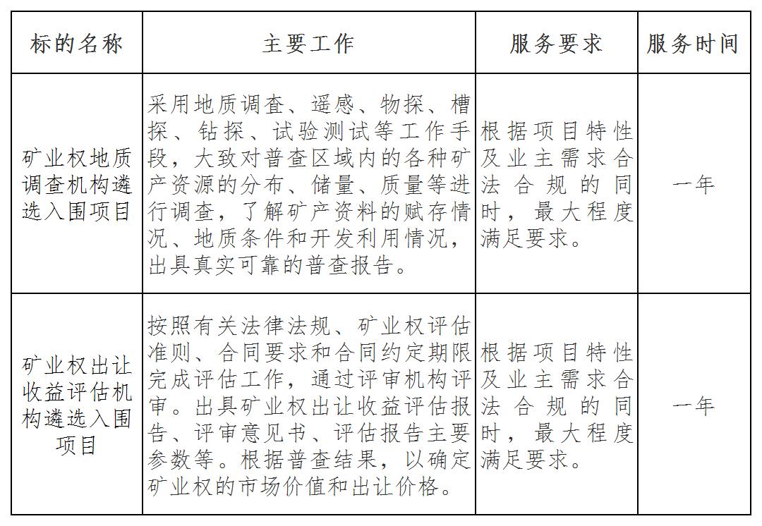 二、項目名稱:礦業(yè)權(quán)地質(zhì)調(diào)查機構(gòu)和出讓收益評估機構(gòu)遴選入圍項目