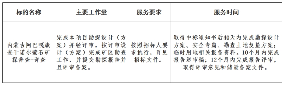 二、項目名稱:內(nèi)蒙古阿巴嘎旗查干諾爾螢石礦探普查-詳查