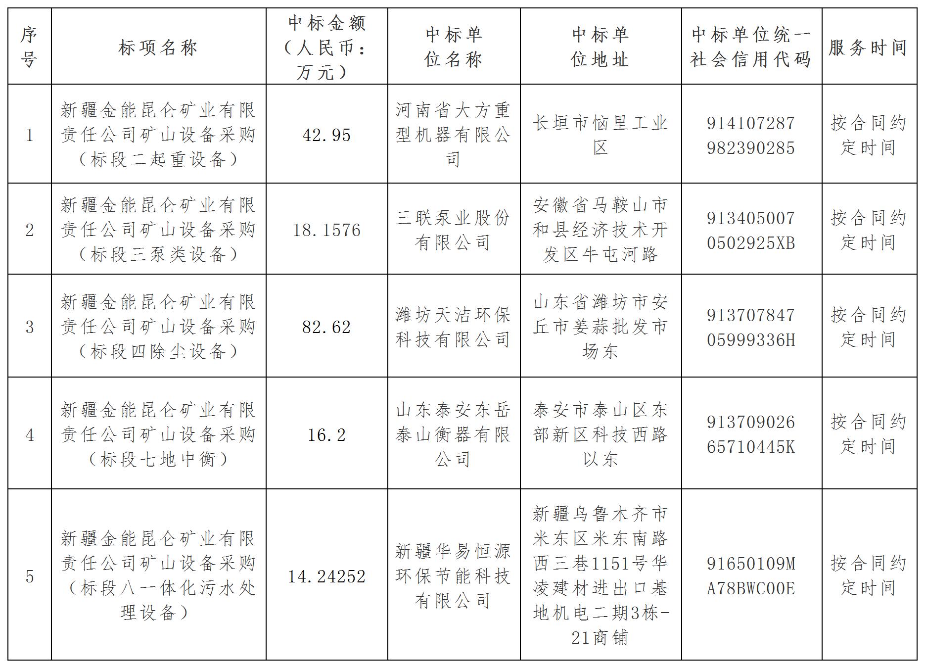 二、項目名稱:新疆金能昆侖礦業(yè)有限責(zé)任公司礦山設(shè)備采購項目