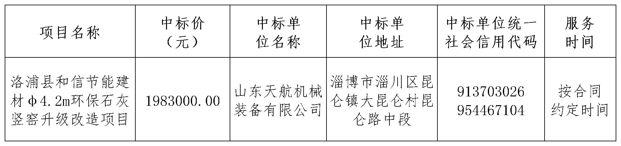 洛浦縣和信節(jié)能建材φ4.2m環(huán)保石灰豎窯升級改造項目公開招標(biāo)評標(biāo)結(jié)果公示